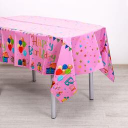 Скатерть «С днём рождения», 137 × 183 см, розовая