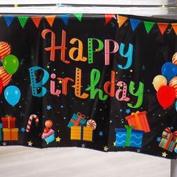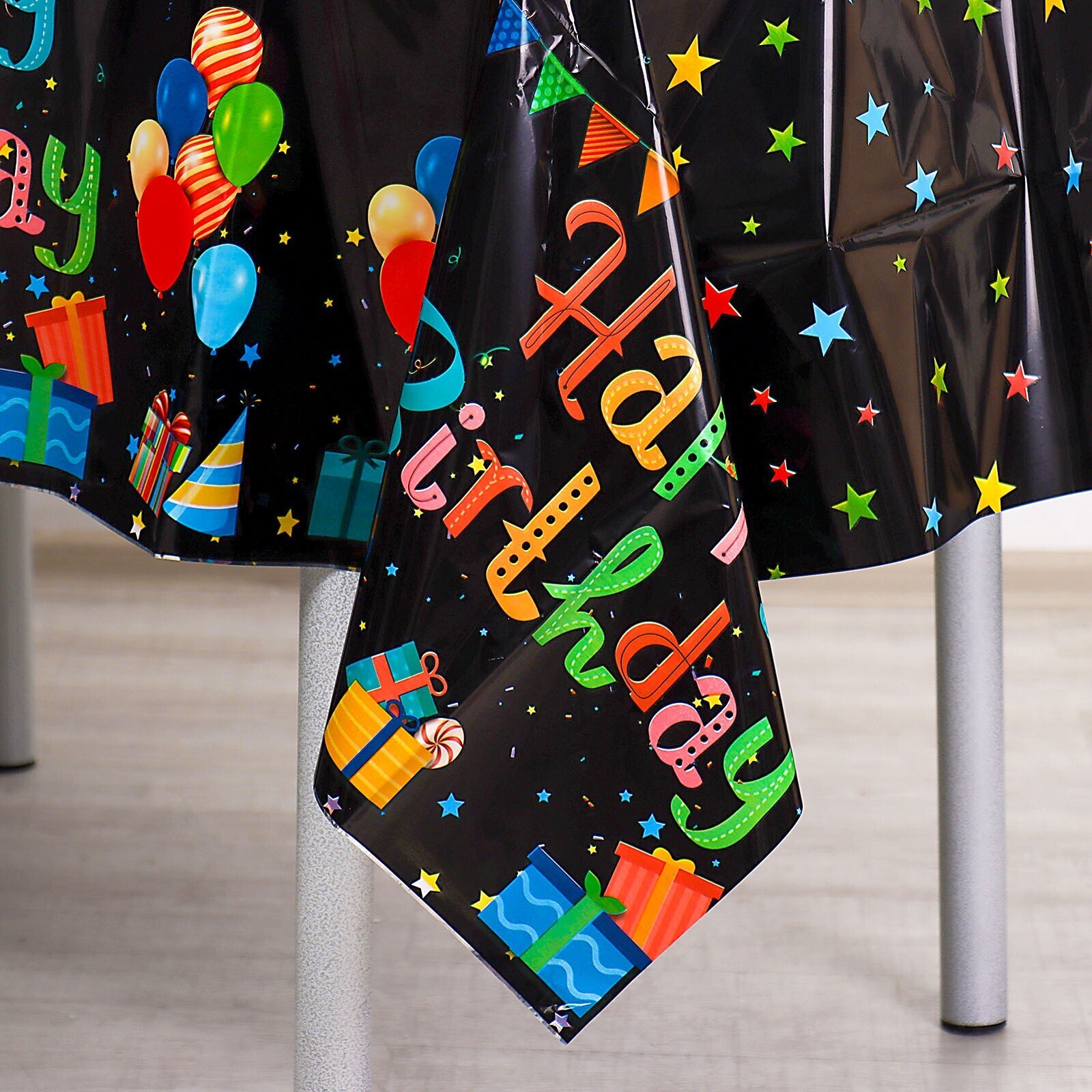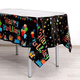 Скатерть «С днём рождения», 137 × 183 см, чёрная
