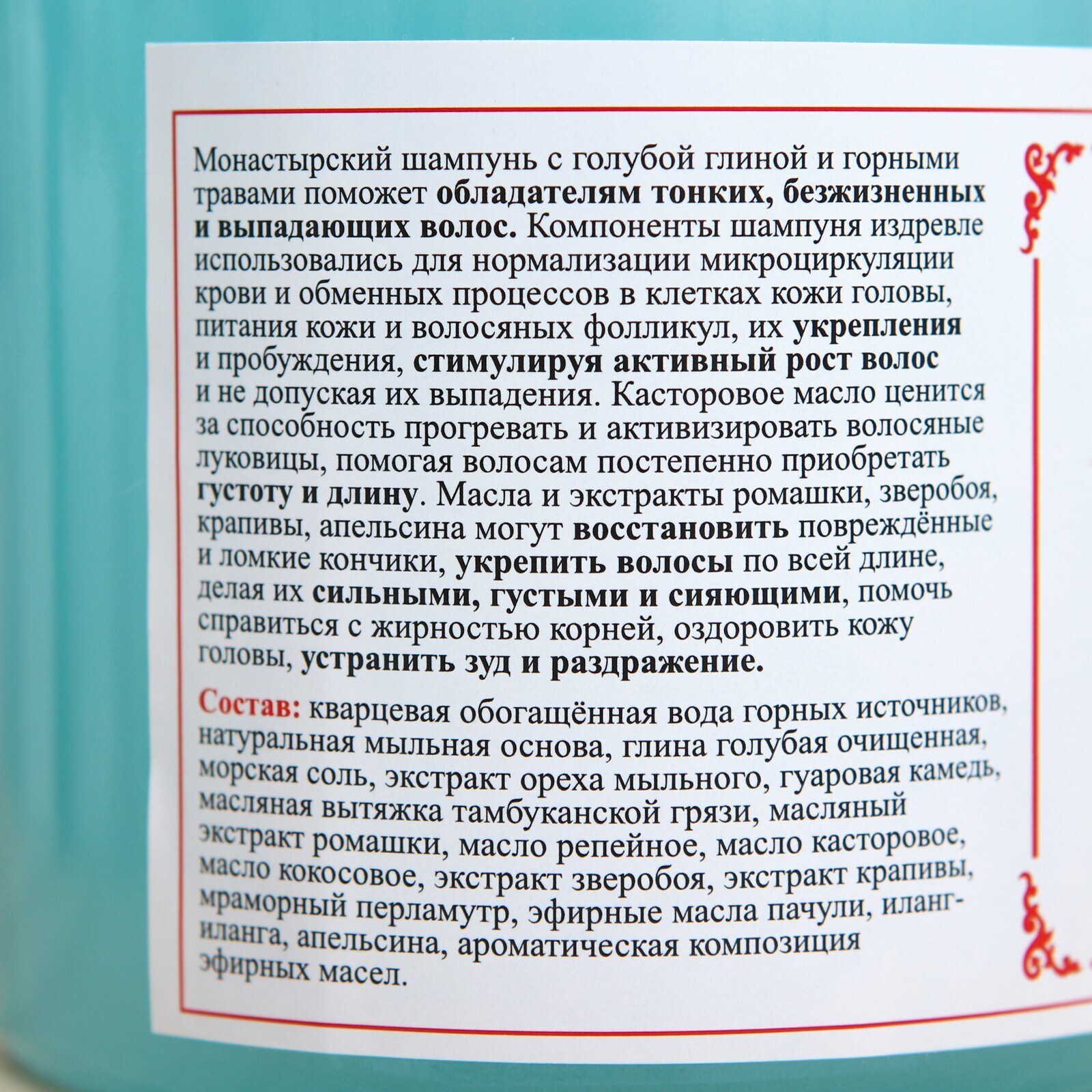 Шампунь Монастырский «Голубая глина», бессульфатный 500 мл