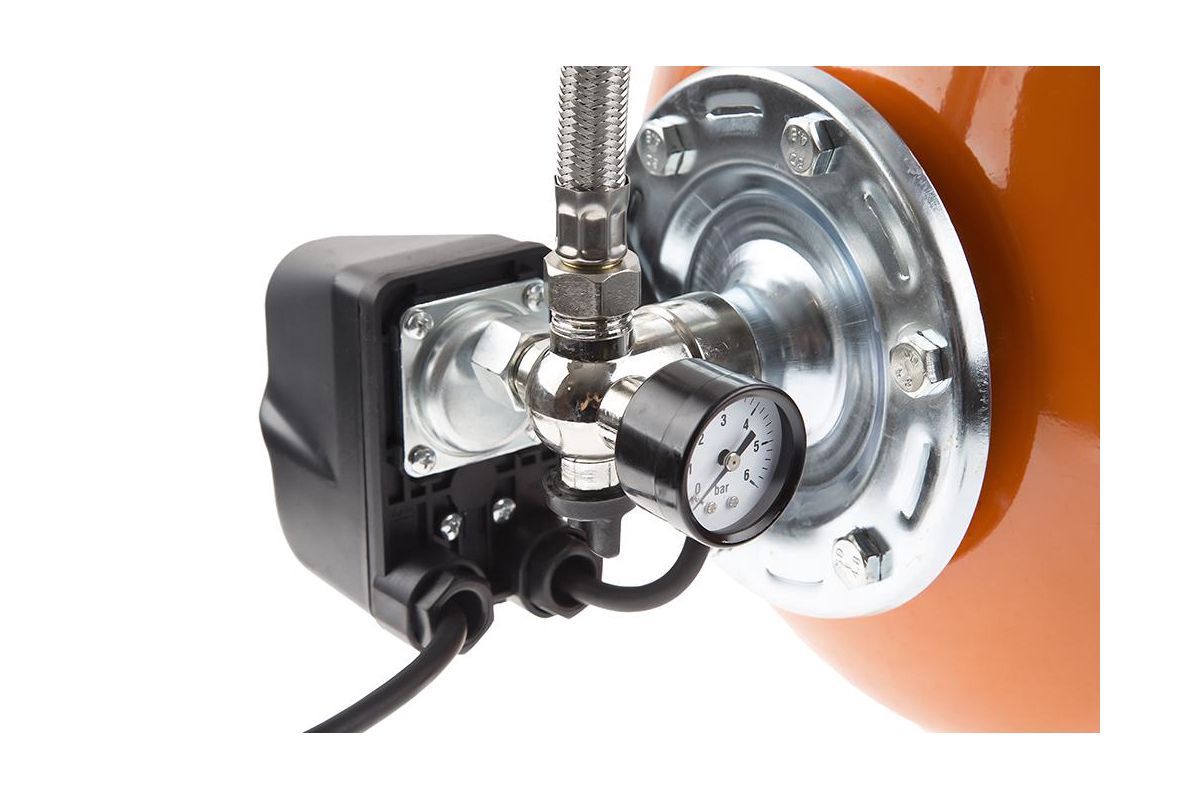 Встроенный датчик давления контролирует работу насоса. Включает его при понижении давления и выключает при повышении.
