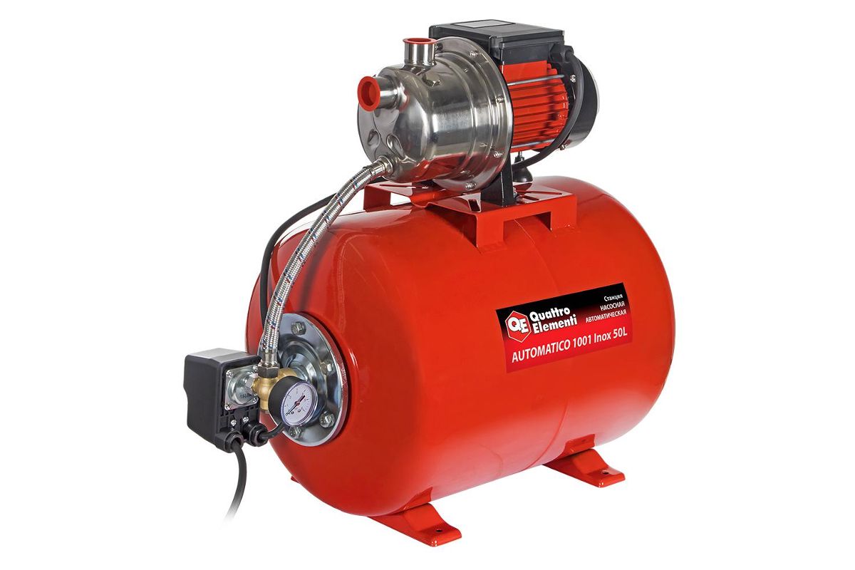 Насосная станция QUATTRO ELEMENTI Automatico 1001 Inox50L 910-225 пригодится организации водоснабжения частных домов и коттеджей, а также для повышения давления в водопроводной сети. Мощность станции 1000 Вт, а её производительность – 3600 л/ч. Поднимает воду на высоту до 40 м.