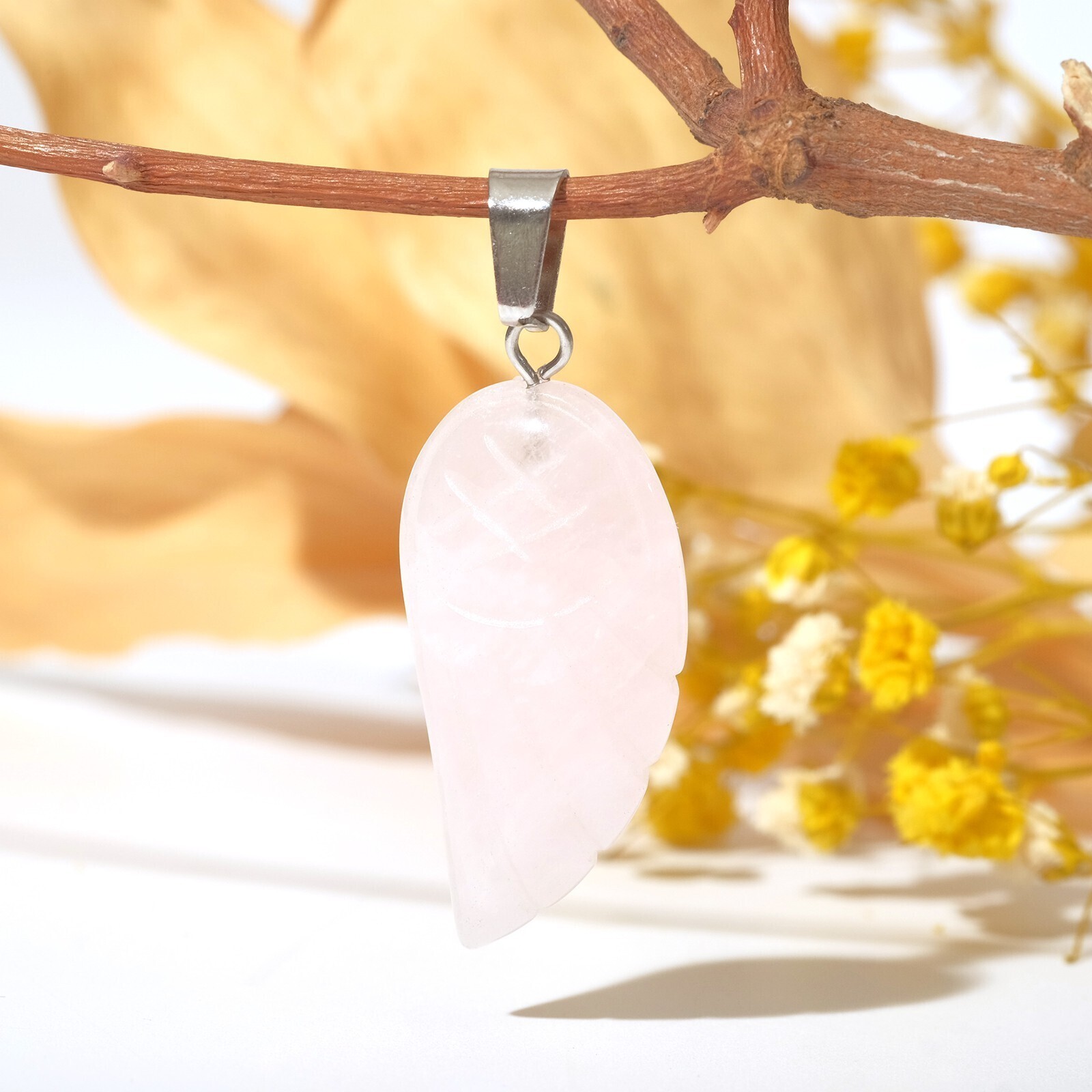 Подвеска крыло " Кварц розовый"