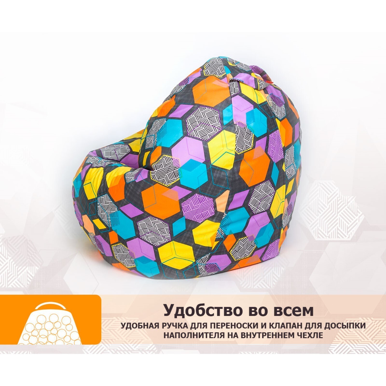 Кресло-мешок «Макси», размер 100x150 см, принт геометрия мульти