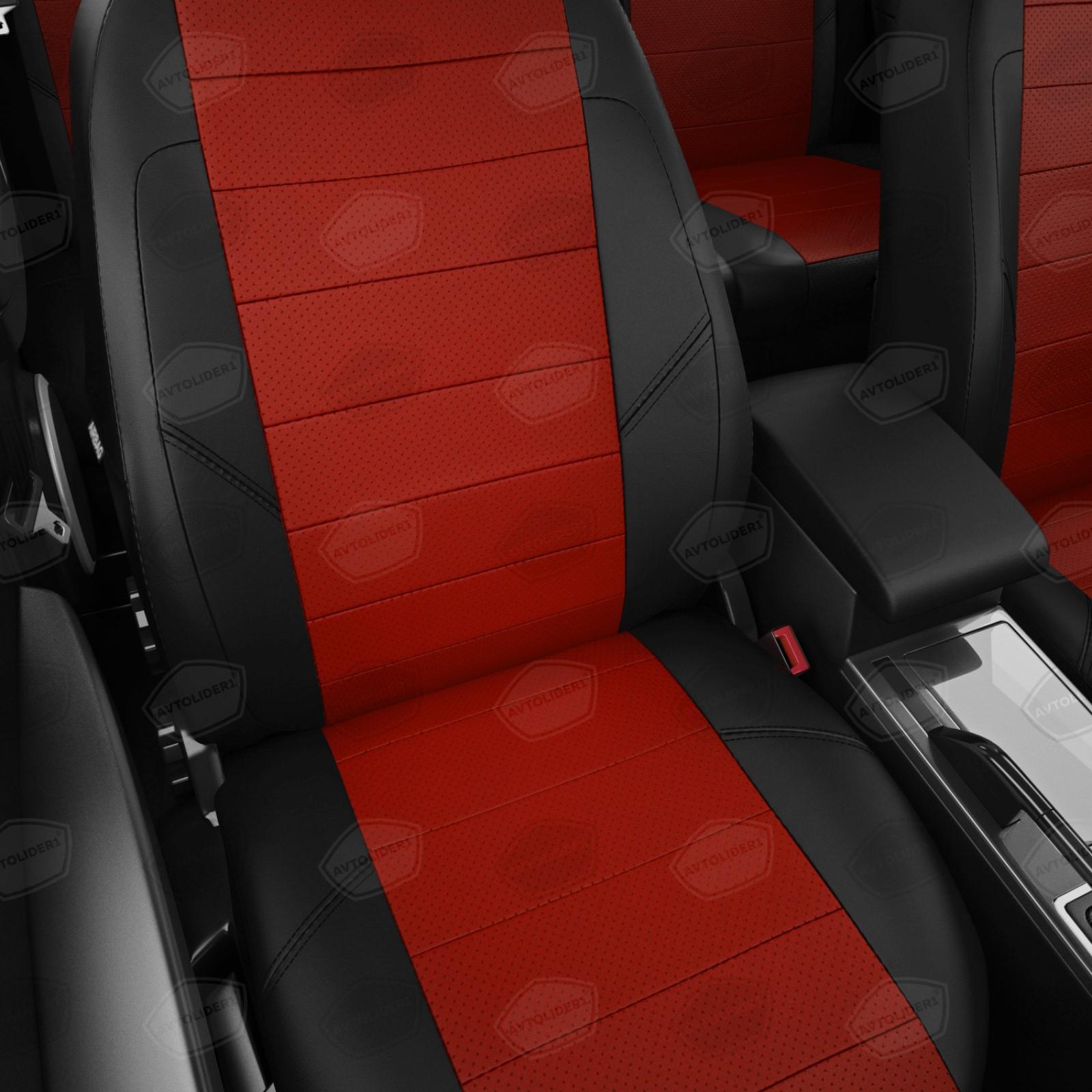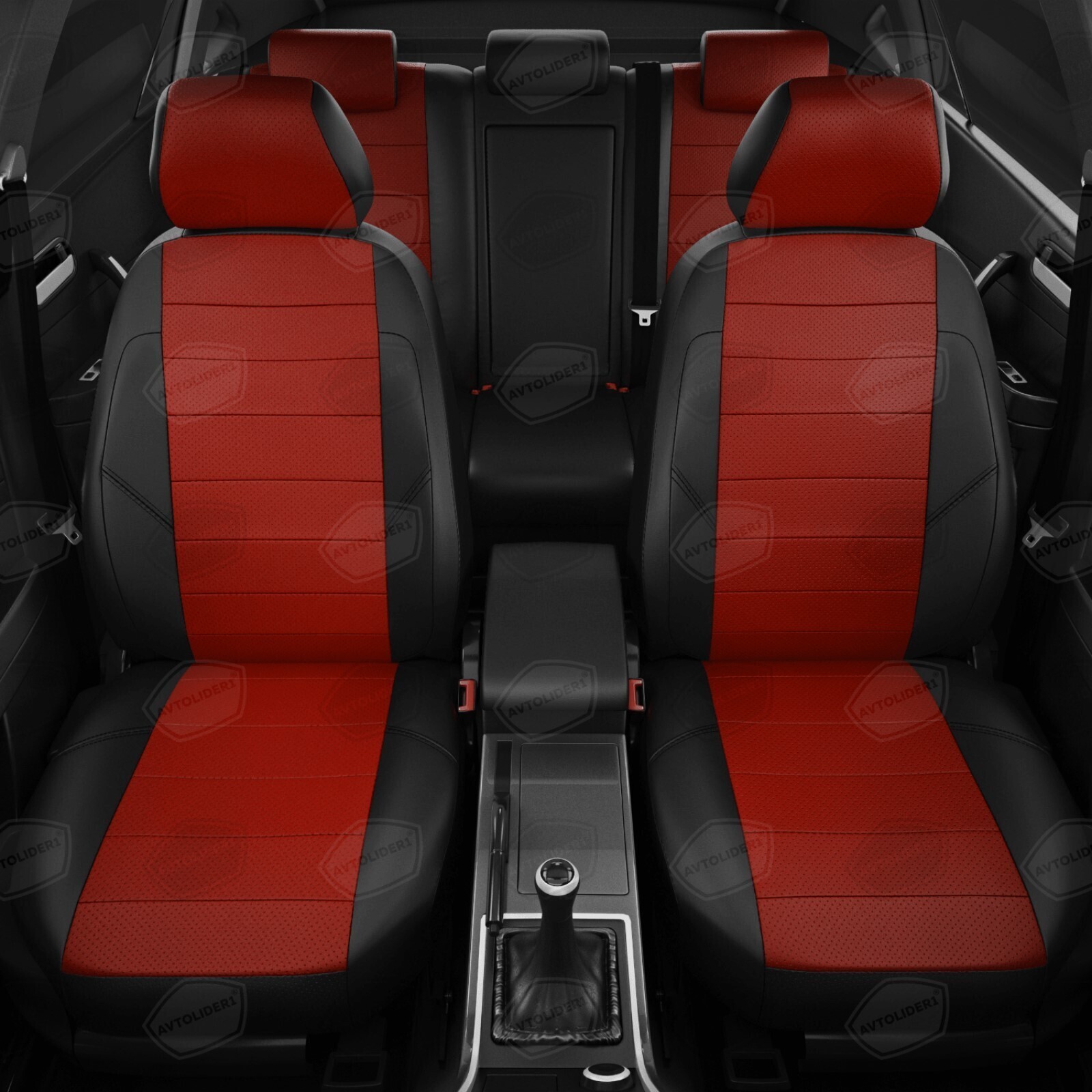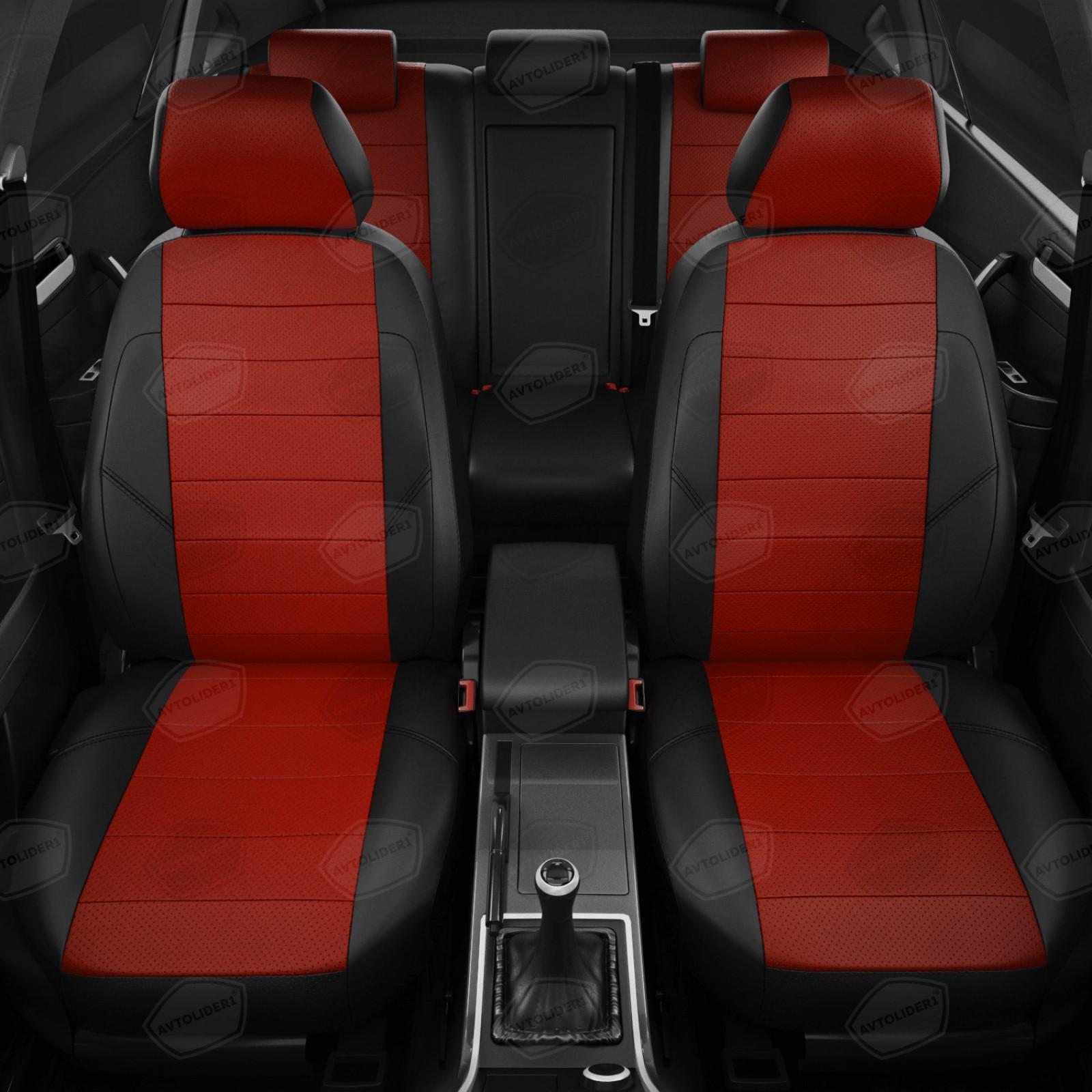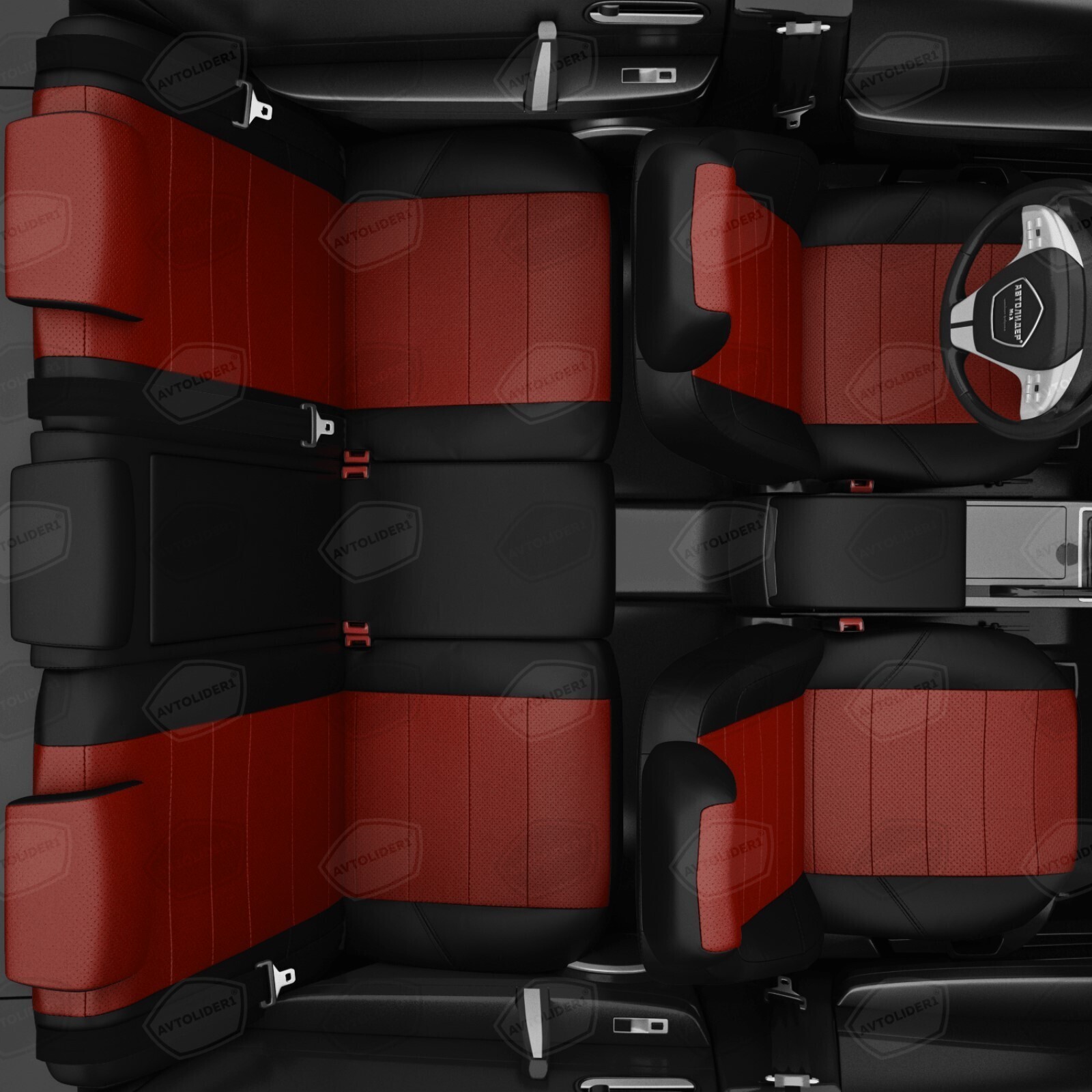 Середина: экокожа красная с перфорацией. Боковины: чёрная экокожа. Спинка: чёрная экокожа.