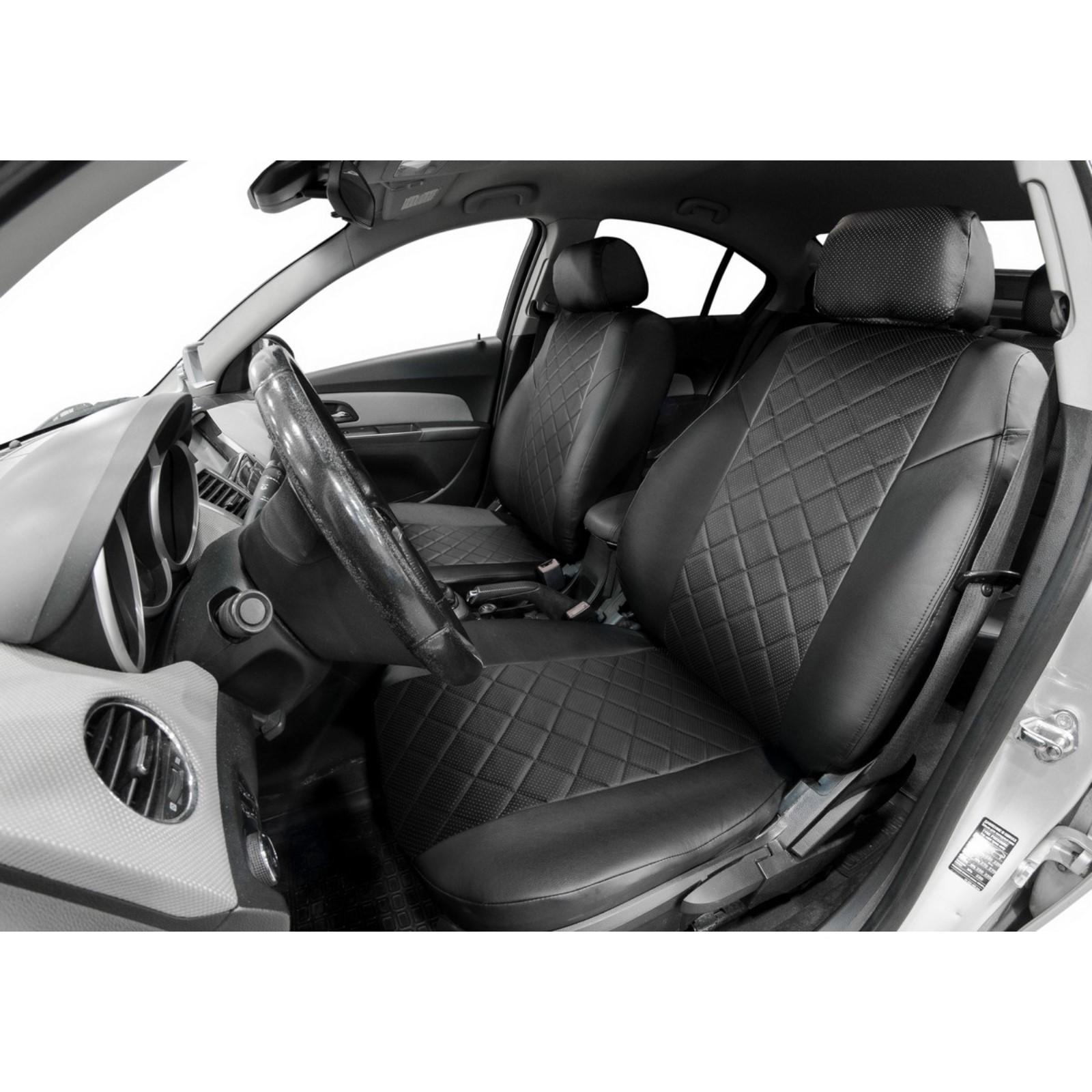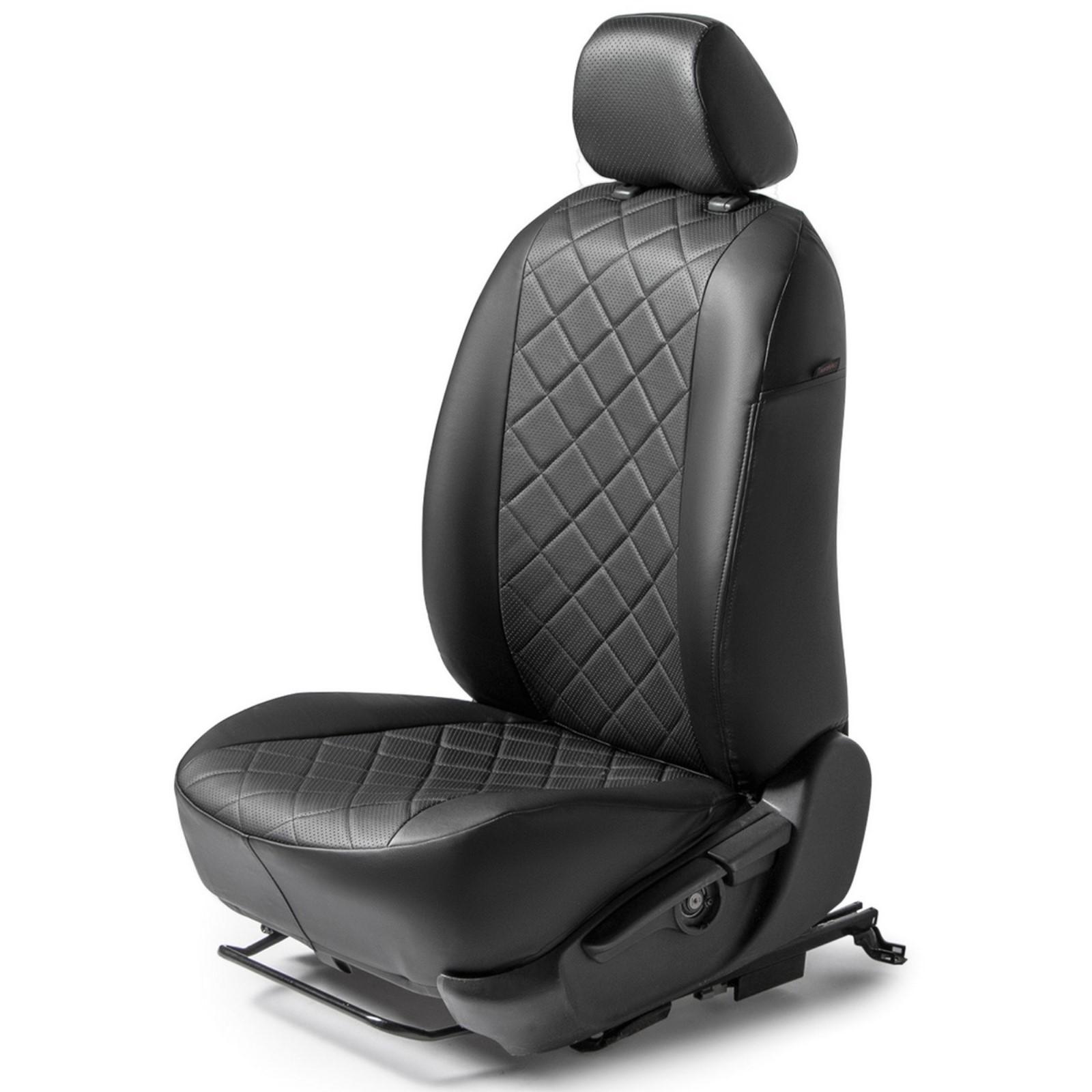 Авточехлы Rival Ромб (передний ряд), Lada Largus универсал, фургон 2012-2021, Lada Largus Сross универсал 2014-2021, эко-кожа, черные, SC.6014.2
