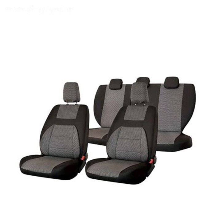 Чехлы сиденья Nissan Almera седан с 2012 г слитная спинка, жаккард 11 предм. SKYWAY, черный, тёмно-серый Nis3-2