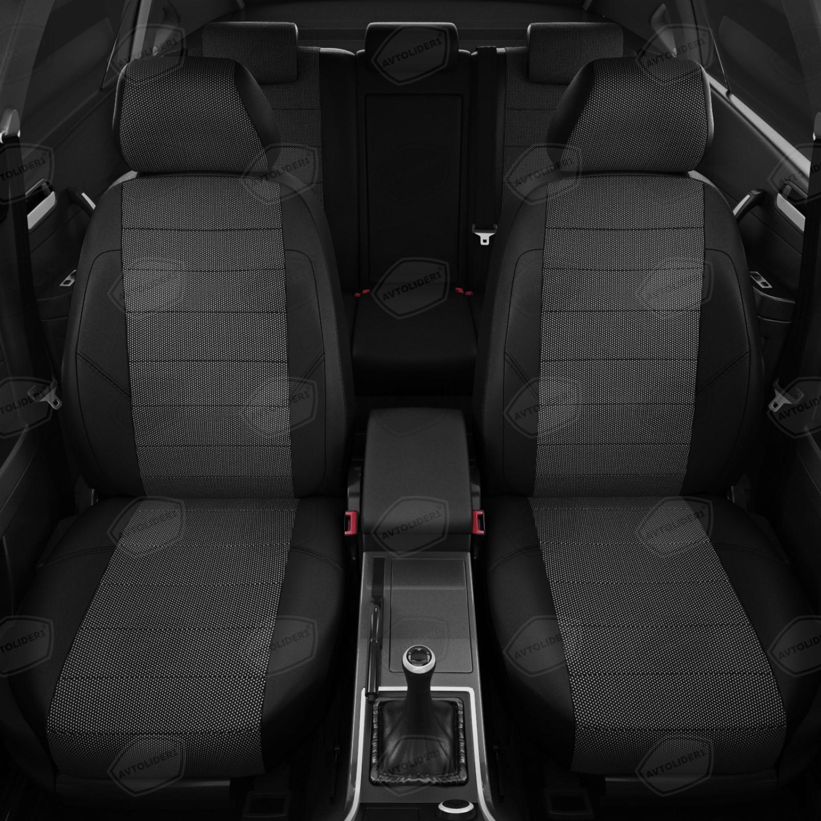Авточехлы для Volkswagen Crafter с 2017-н.в. фургон Передние 3 места. Пассажирская спинка единая, сиденье 50 на 50, передний подлокотник в вод. спинке, 3 подголовника