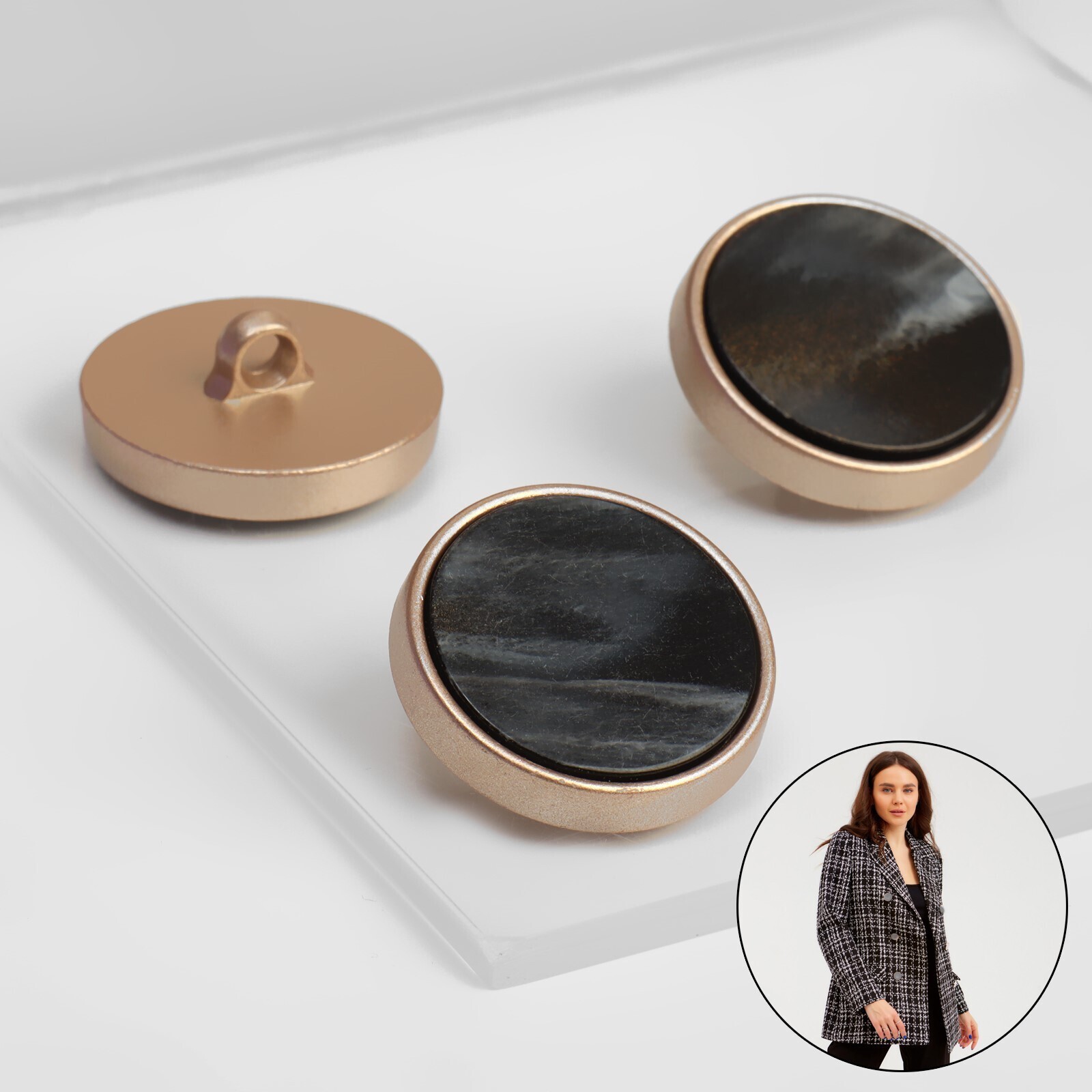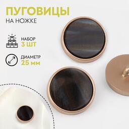 Набор пуговиц на ножке, d = 25 мм, 3 шт, цвет чёрный агат