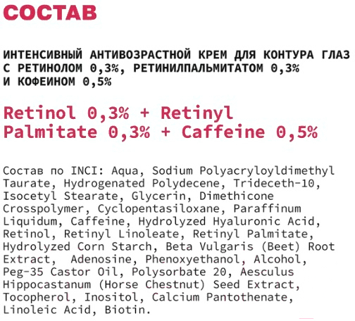 Действиеантивозрастной уход, против отеков, разглаживающее, тонизирующее, антиоксидантное, осветляющее, активизация обменных процессов, регенерирующее, защита от негативных факторов окружающей среды