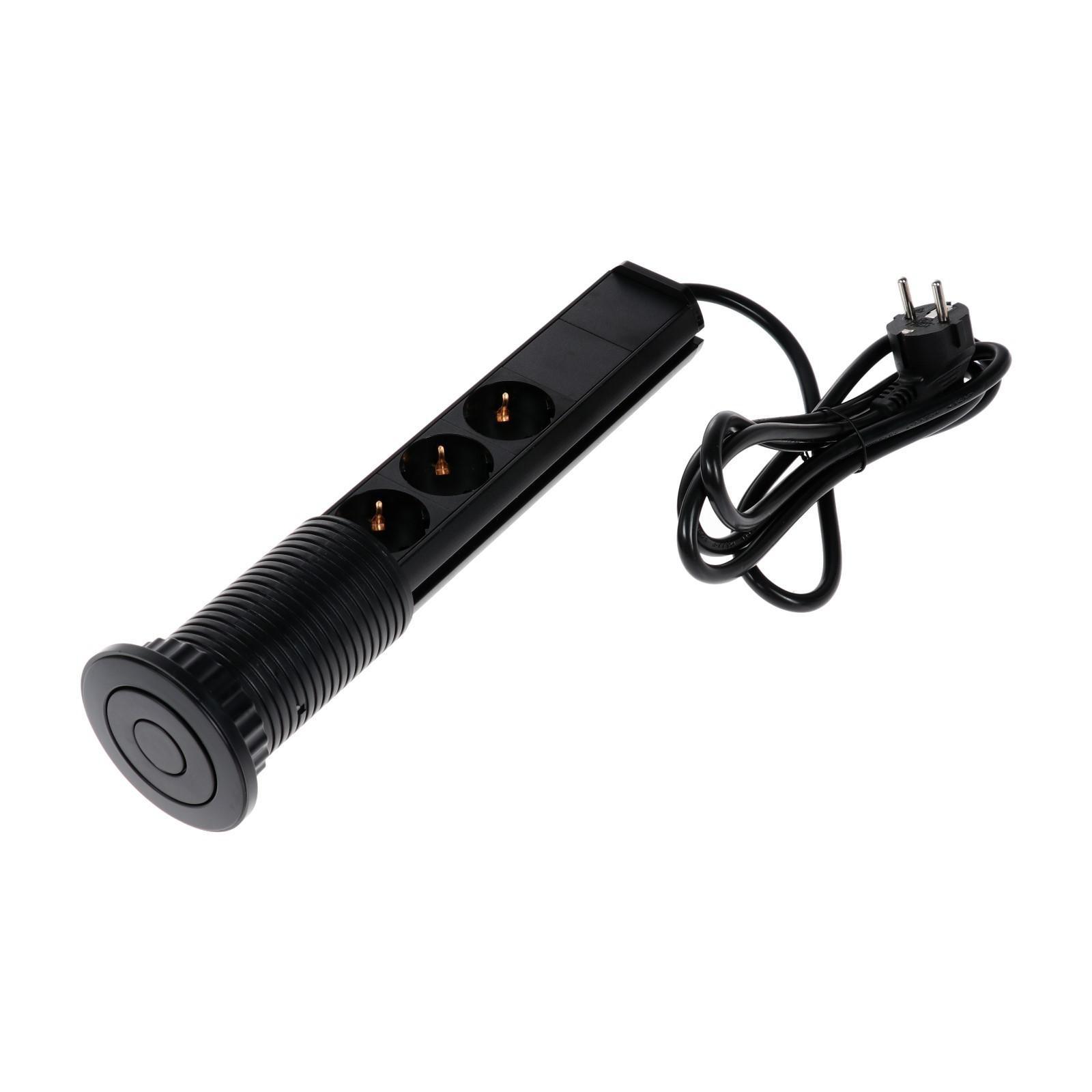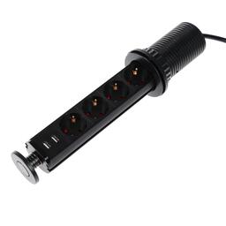 Розетка выдвижная, Luazon, 16 А, четырёхместная, в стол, 2xUSB, 2.1 A, черная