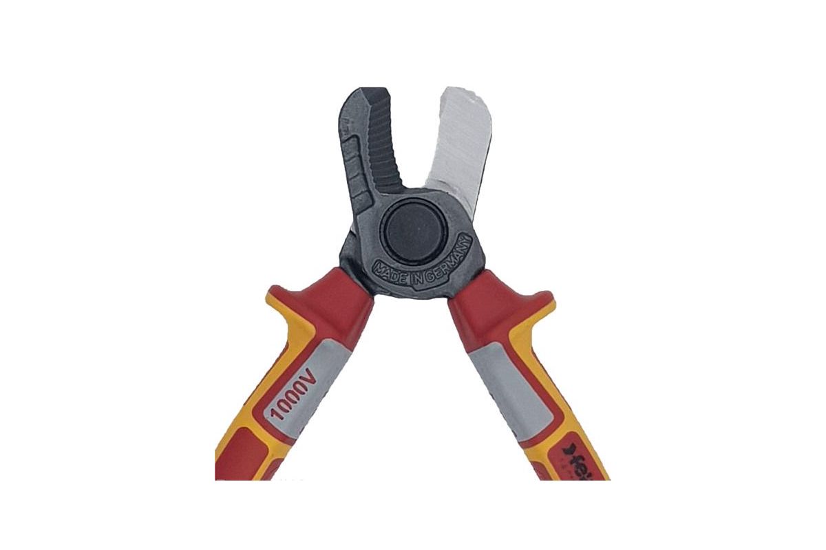 - Рукоятки кабелерезов выполнены из двухкомпонентного нескользящего материала с креплением для страховки от падения с высоты;