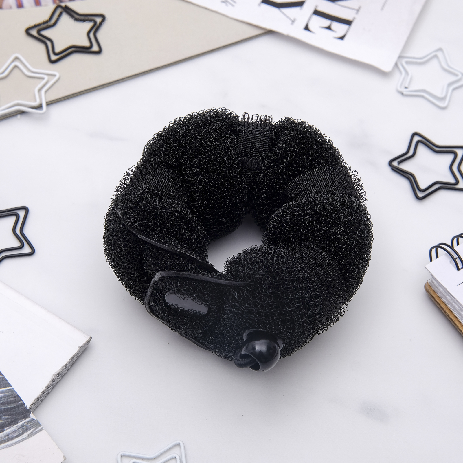 Валик с креплением и резинкой для создания пучка, 5х22,5 см, чёрный