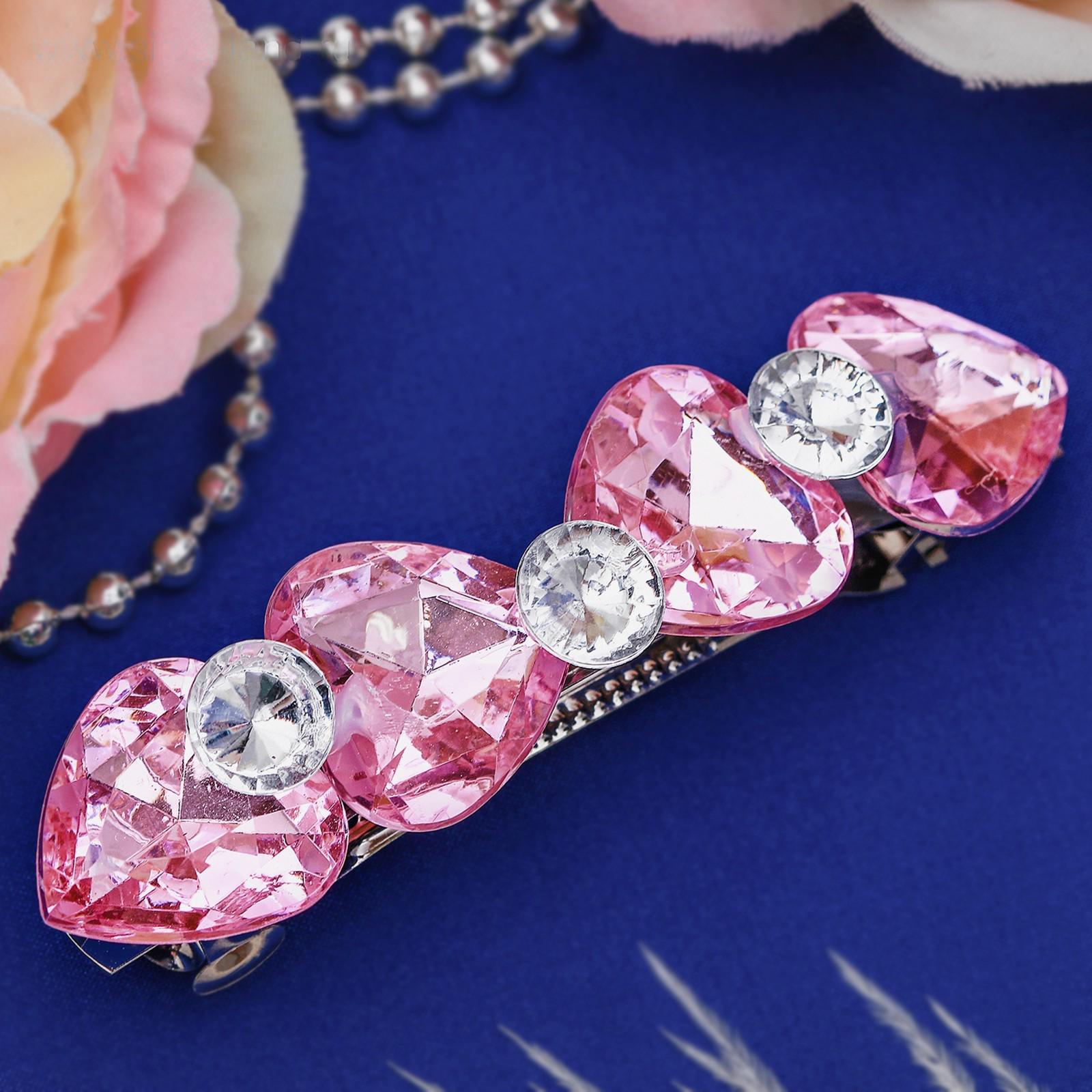 Заколка-автомат для волос "Грани" сердечки, 8 см, микс