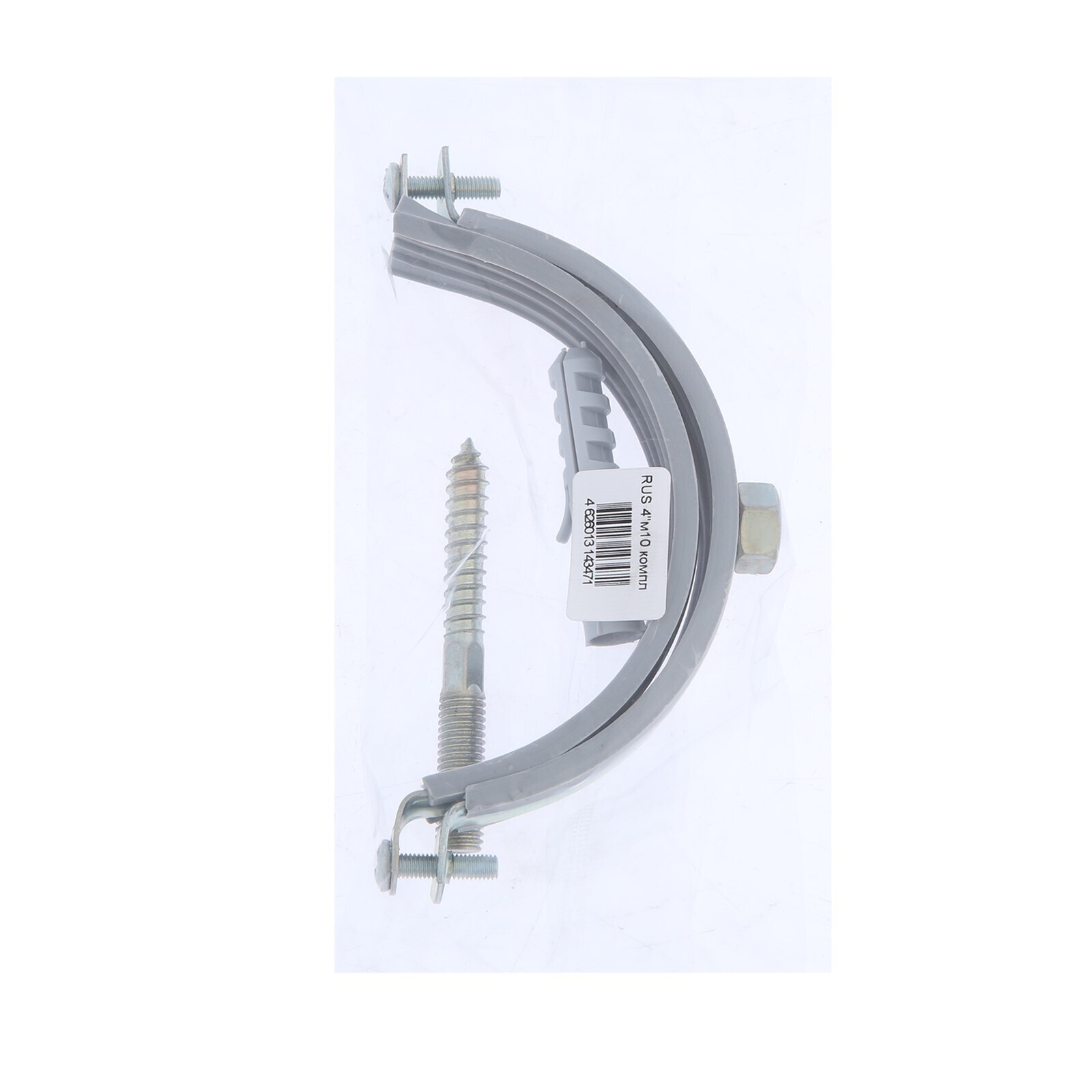 Хомут для труб с гайкой М10, 4", 110-114 мм: в комплекте шпилька сантехническая и дюбель