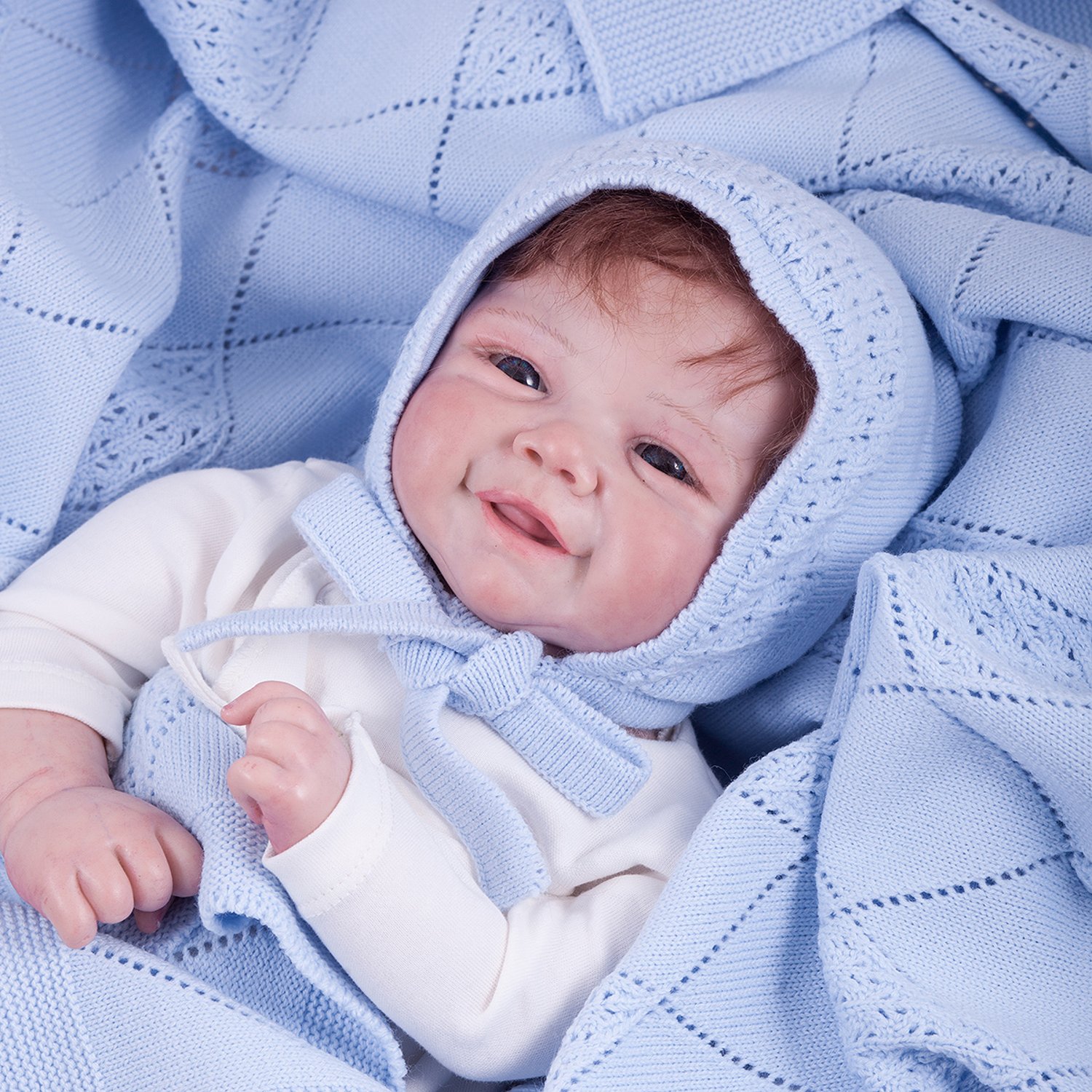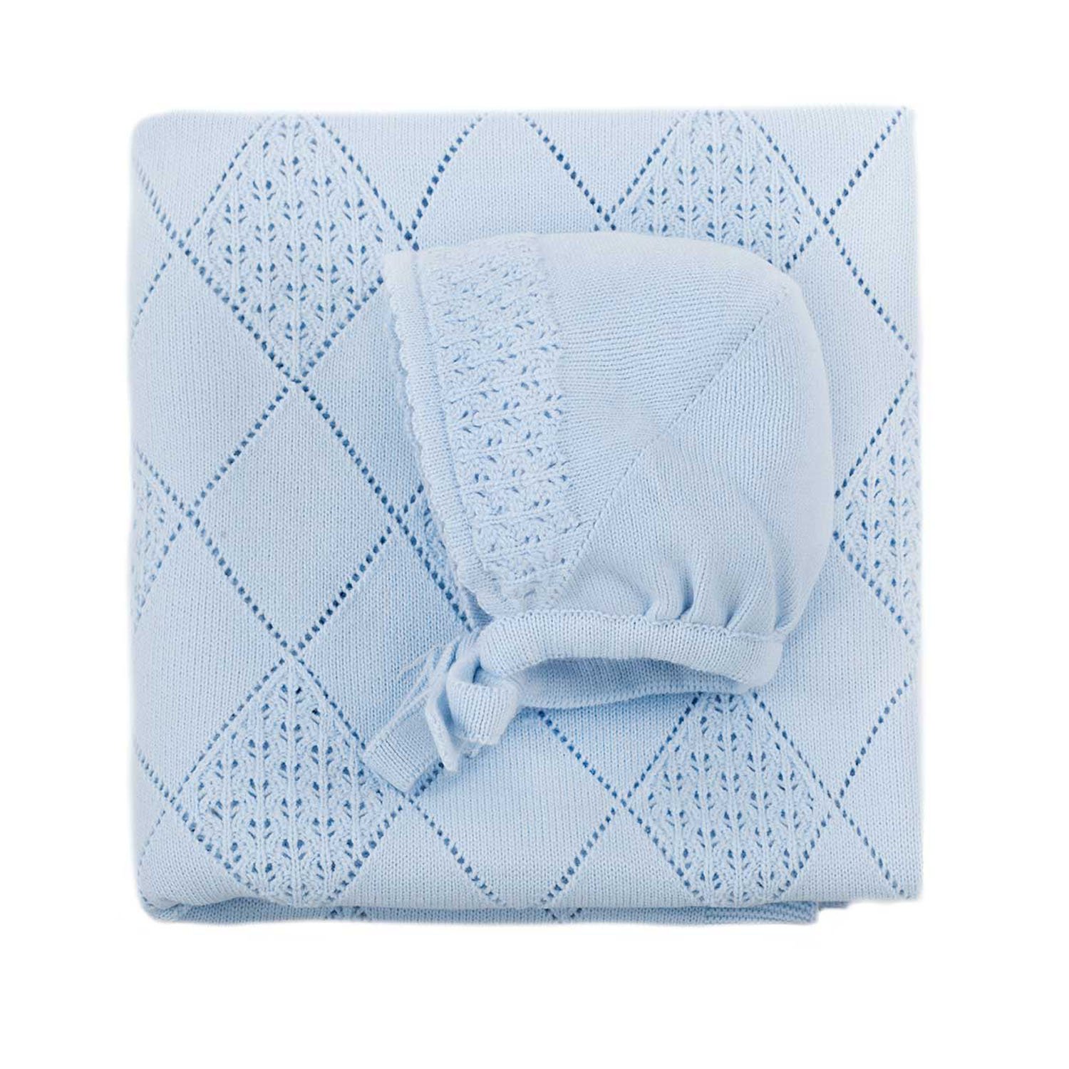 Плед вязаный для новорожденных Чудо-Кроха на выписку в коляску в кроватку Plk-01голубой