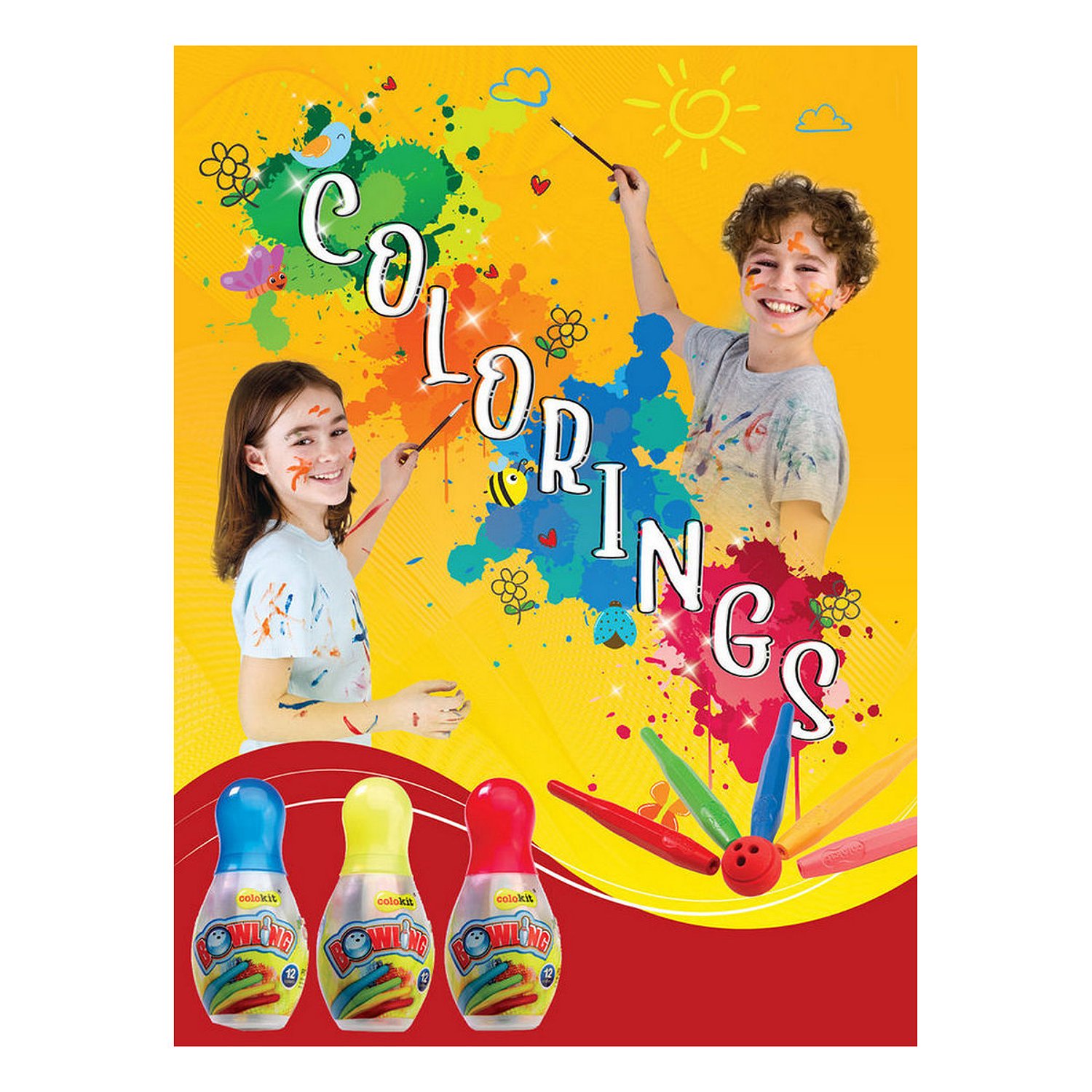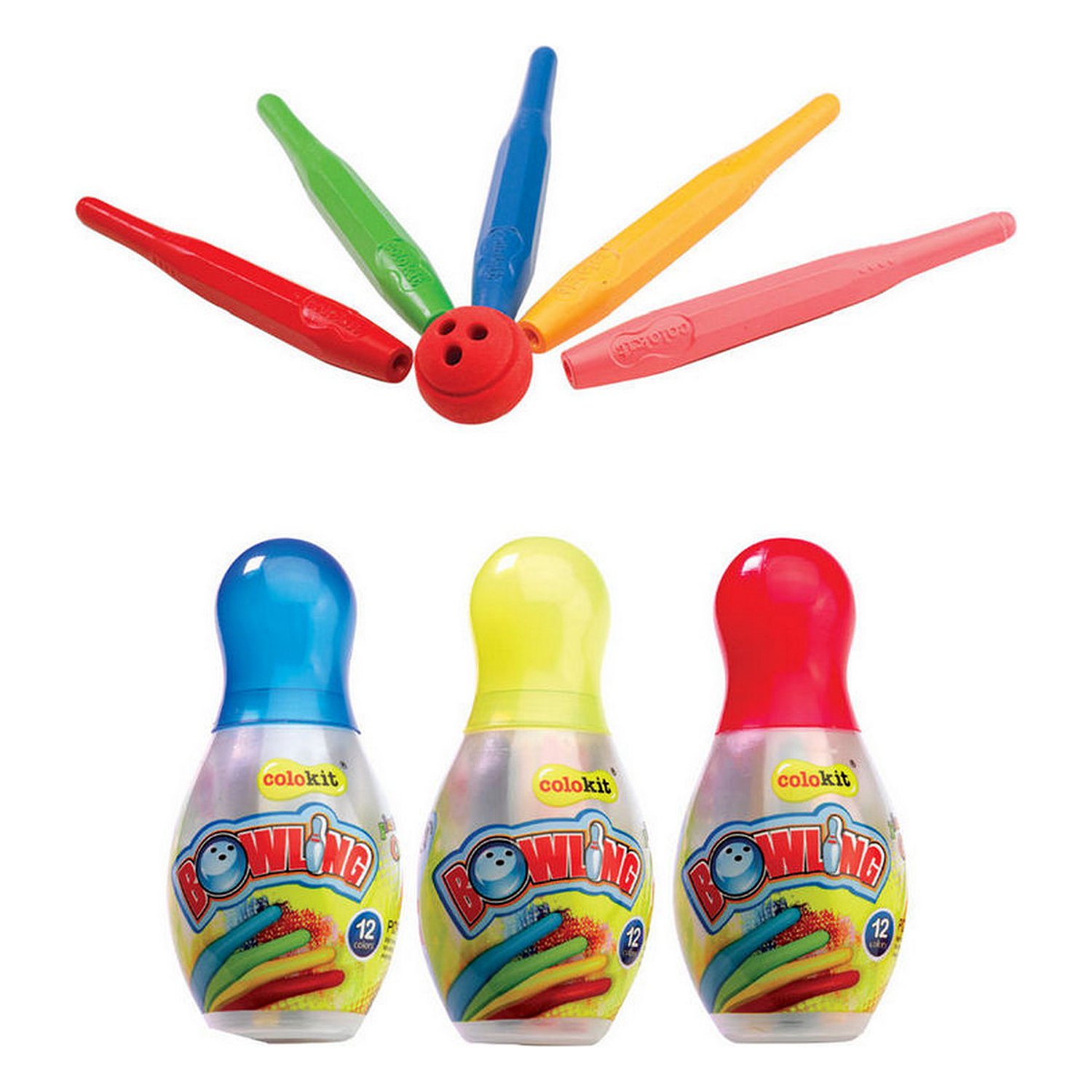 Мелки пластиковые Flexoffice 12 цветов + ластик COLOKIT BOWLING в футляре-кегле PCR-04