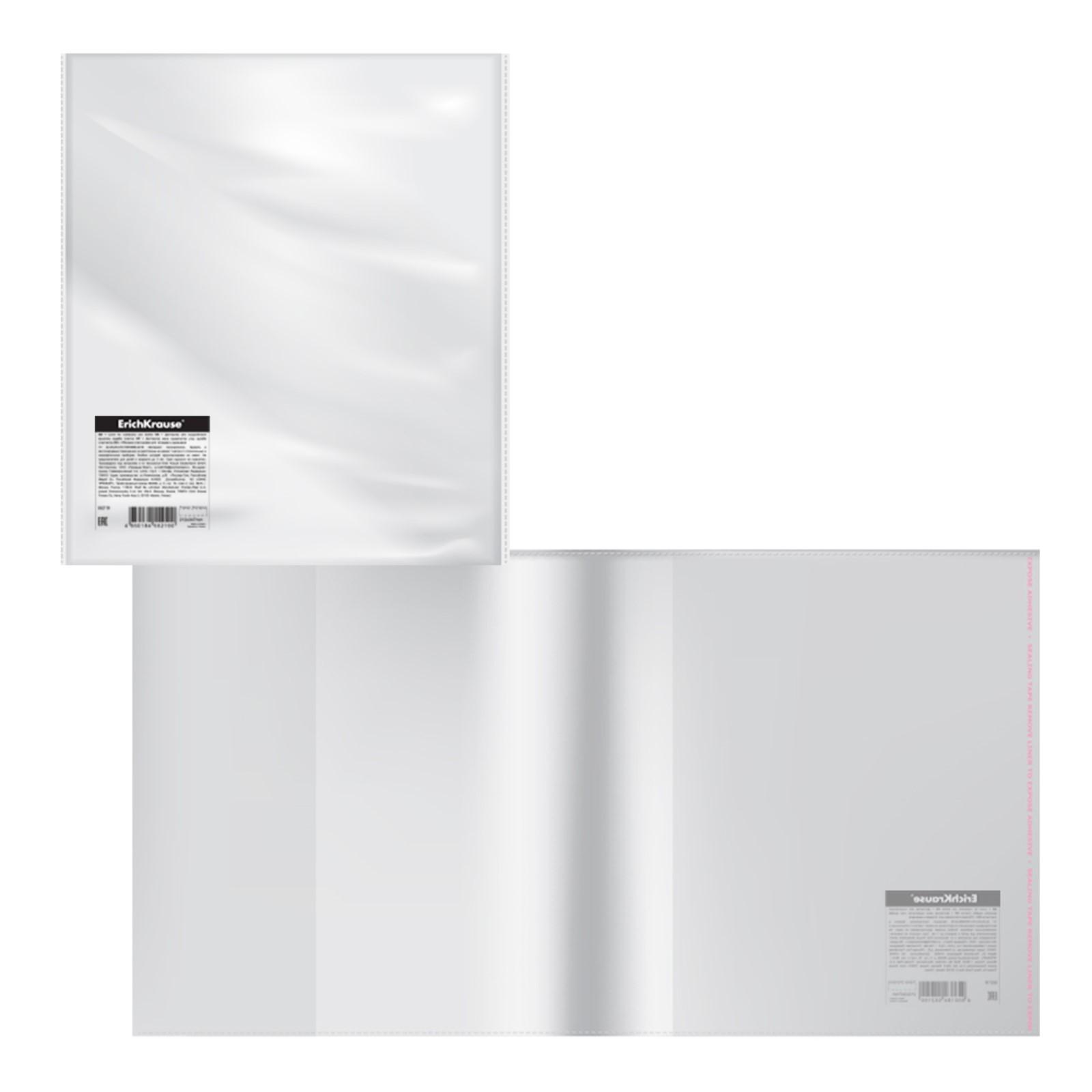 Обложка ПП 212х395мм, 80мкм, ErichKrause "Glossy Clear", для тетрадей и дневников, с клеевым краем и клапаном в край