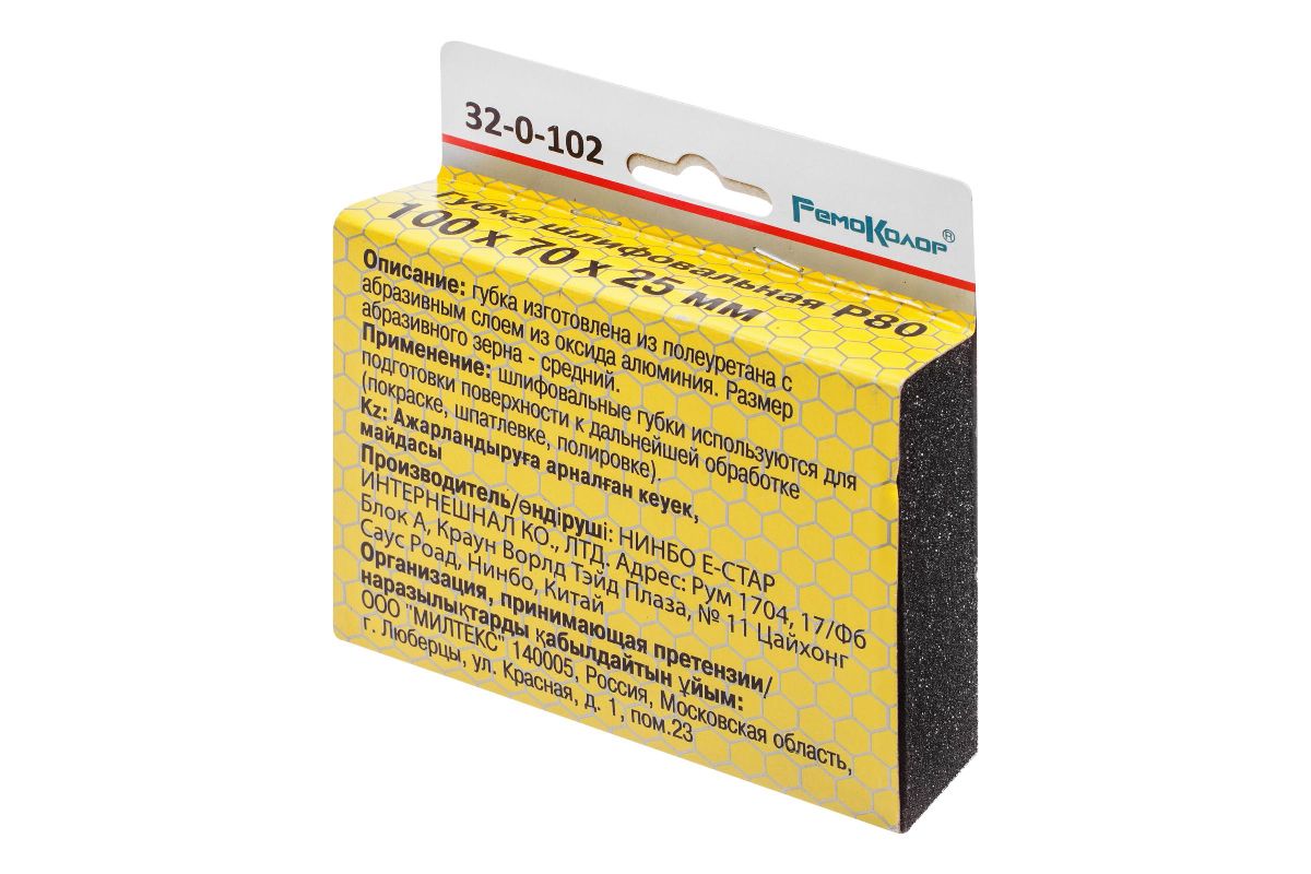 Губка шлифовальная РЕМОКОЛОР 32-0-102 полиуретан на основе из оксида алюминия р80 100х75х25 мм (шт.