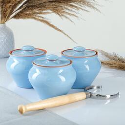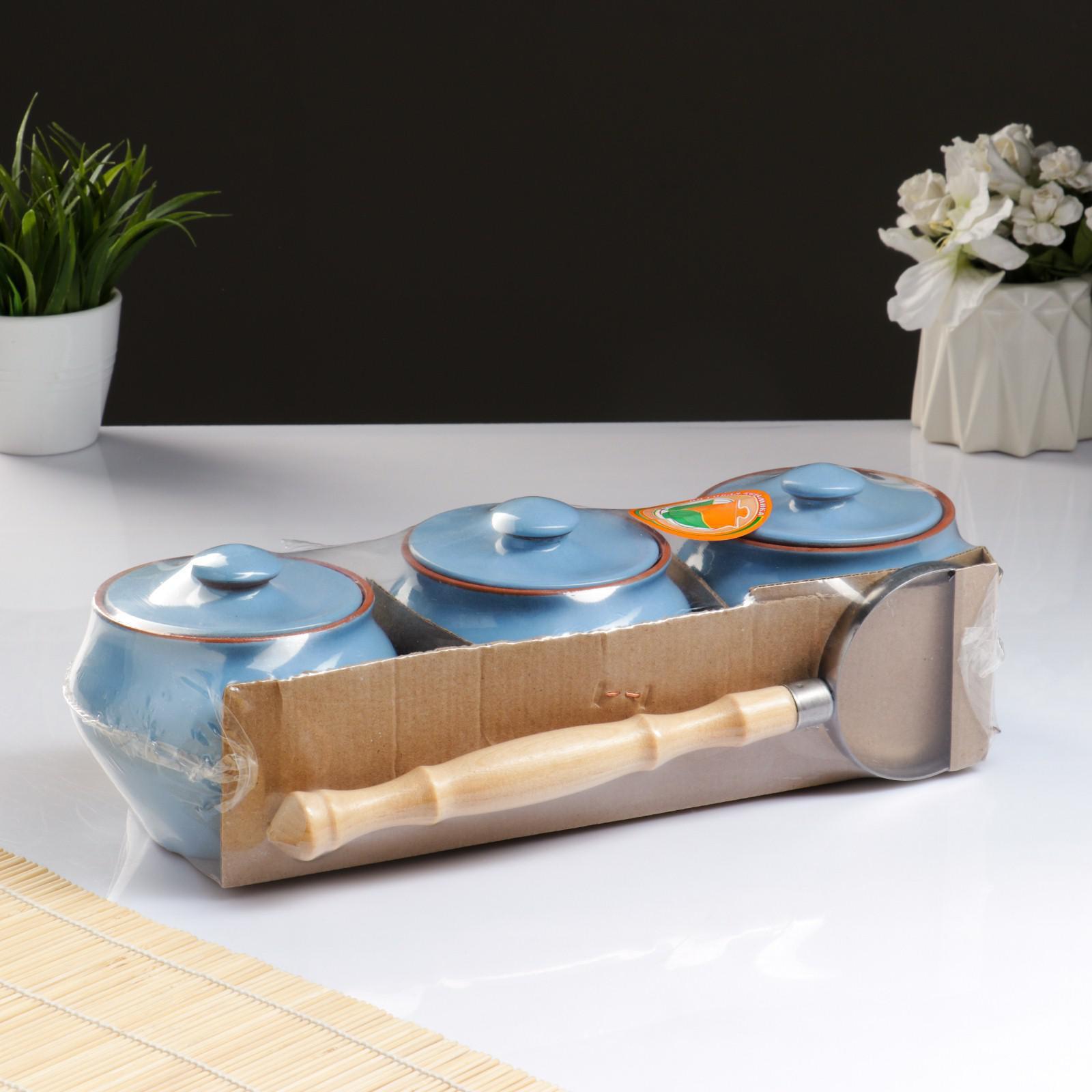 Набор "Вятская керамика Трио" 0,7лх3шт + ухват, голубой