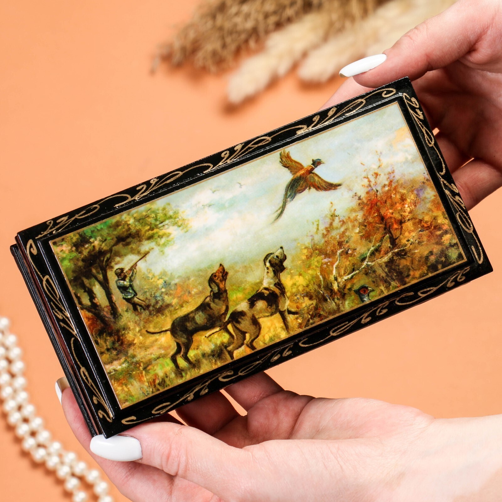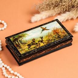 Шкатулка - купюрница «Охота», 8,5×17 см, лаковая миниатюра