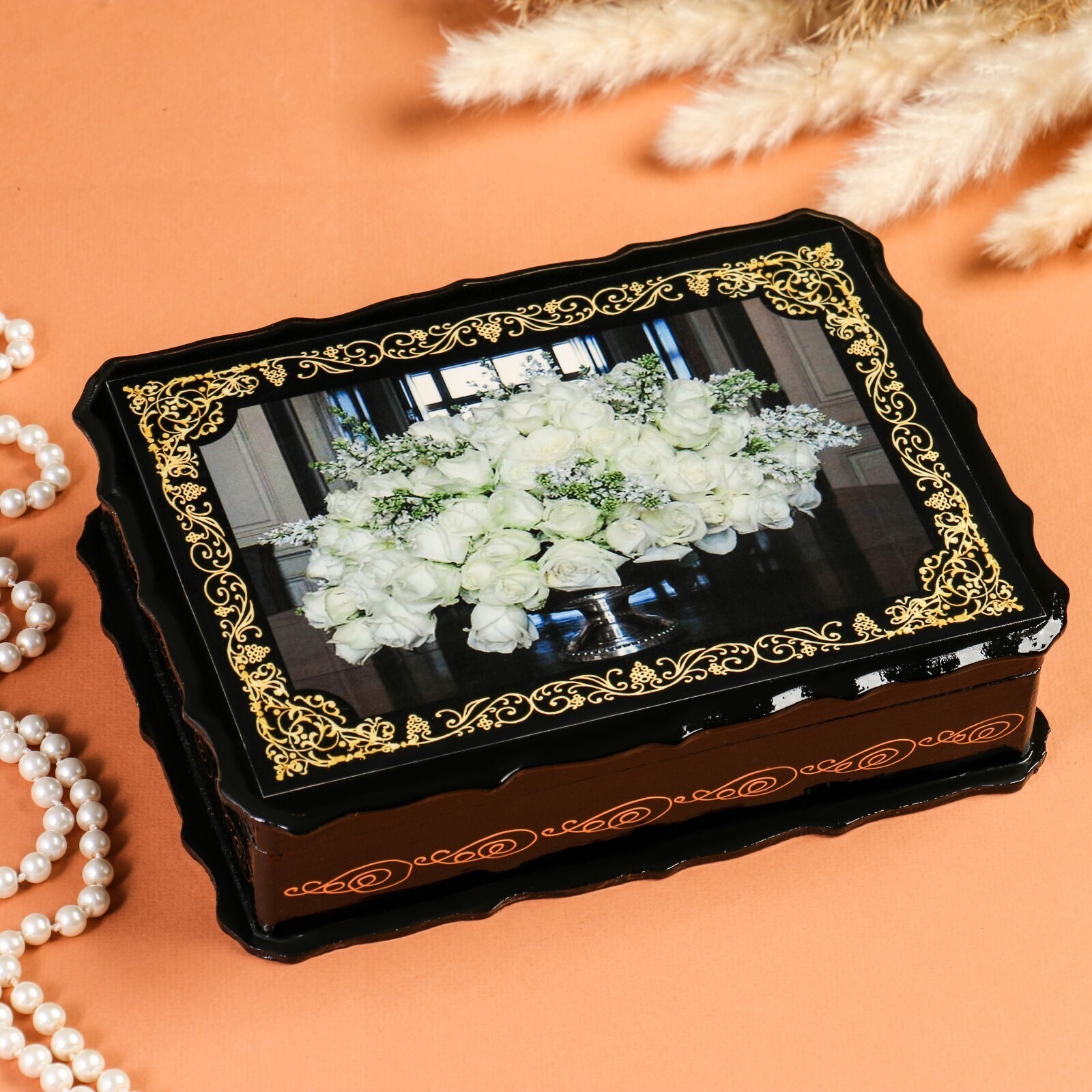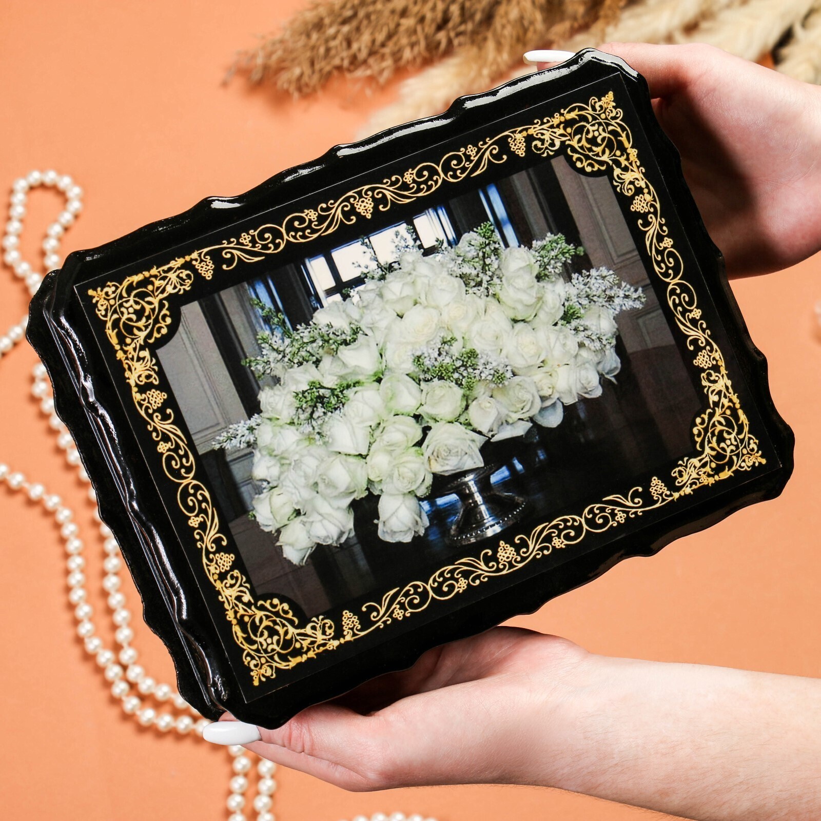 Шкатулка «Белые розы», 17×23×6 см, лаковая миниатюра