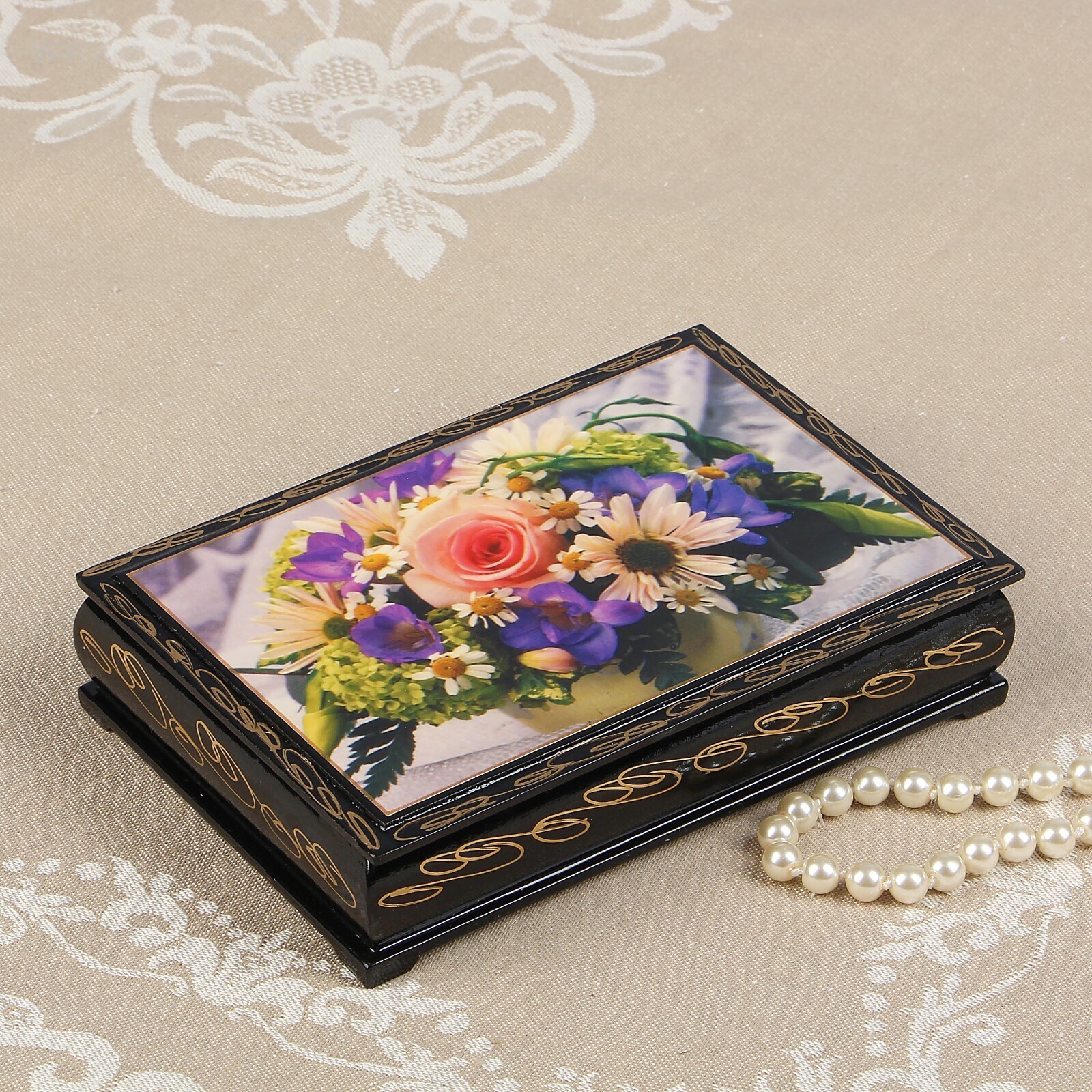 Шкатулка «Букетик», 11×16 см, лаковая миниатюра