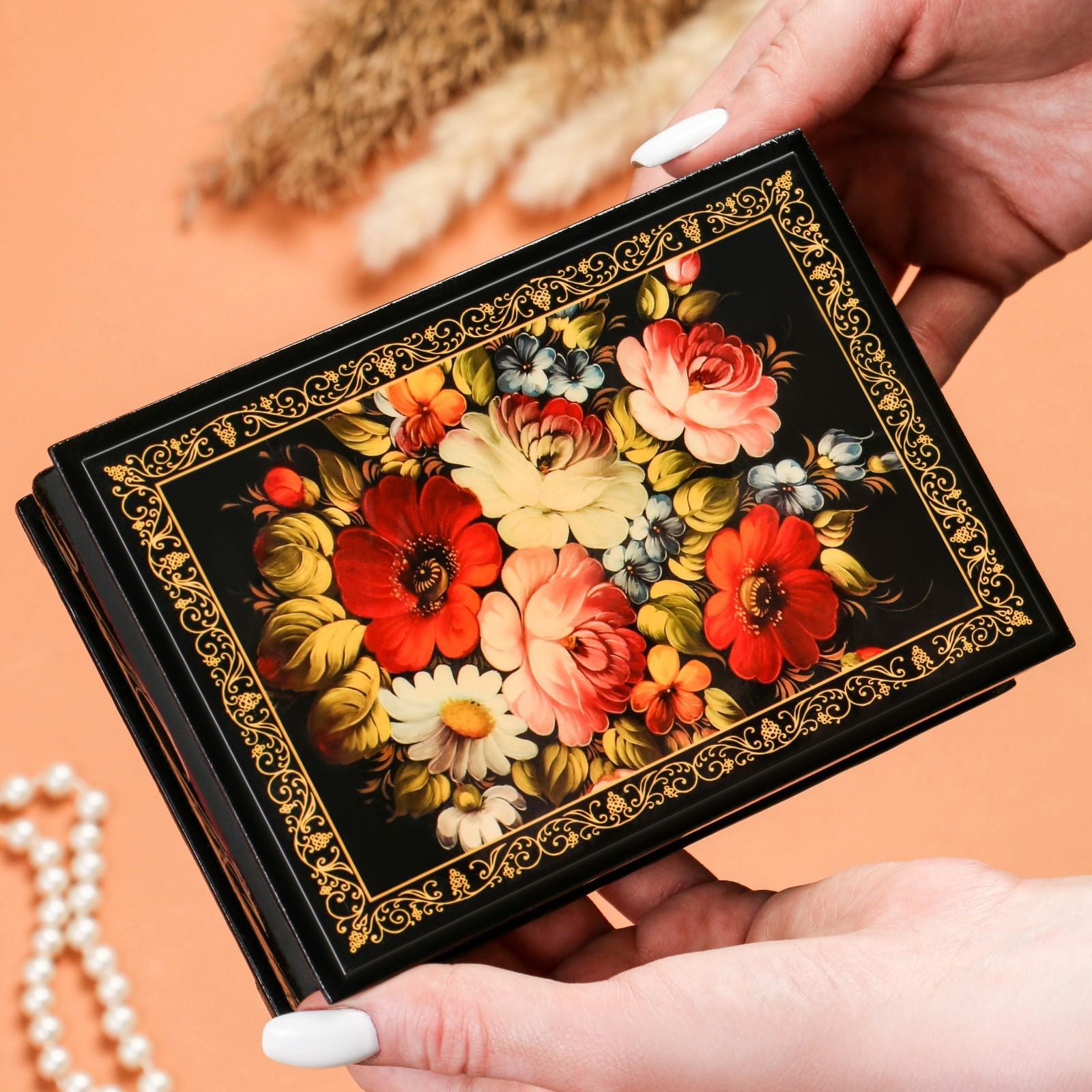 Шкатулка «Цветочная роспись», 11×16 см, лаковая миниатюра
