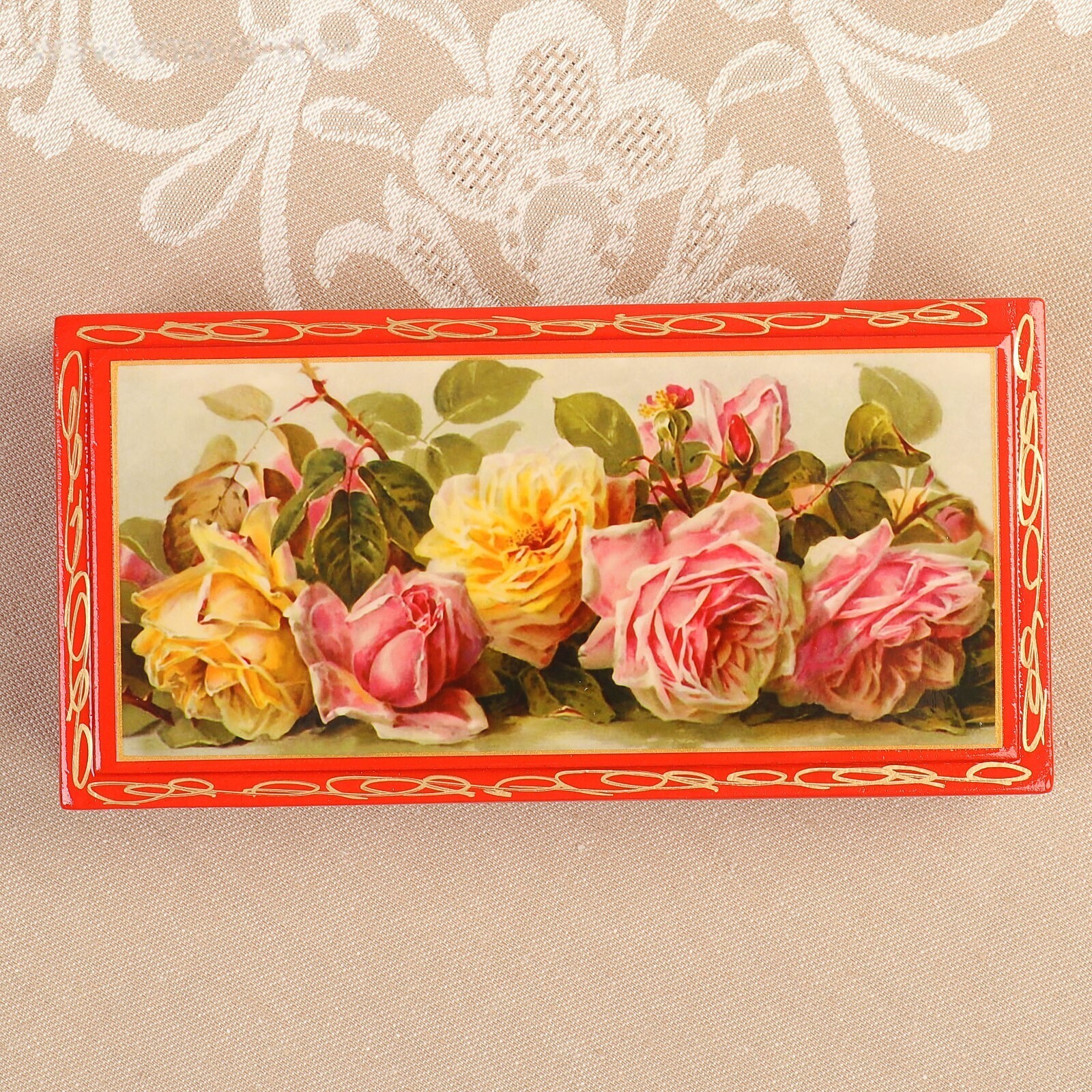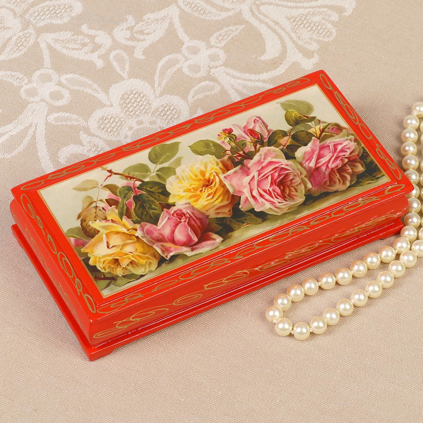 Шкатулка - купюрница «Розы», красная, 8,5×17 см, лаковая миниатюра