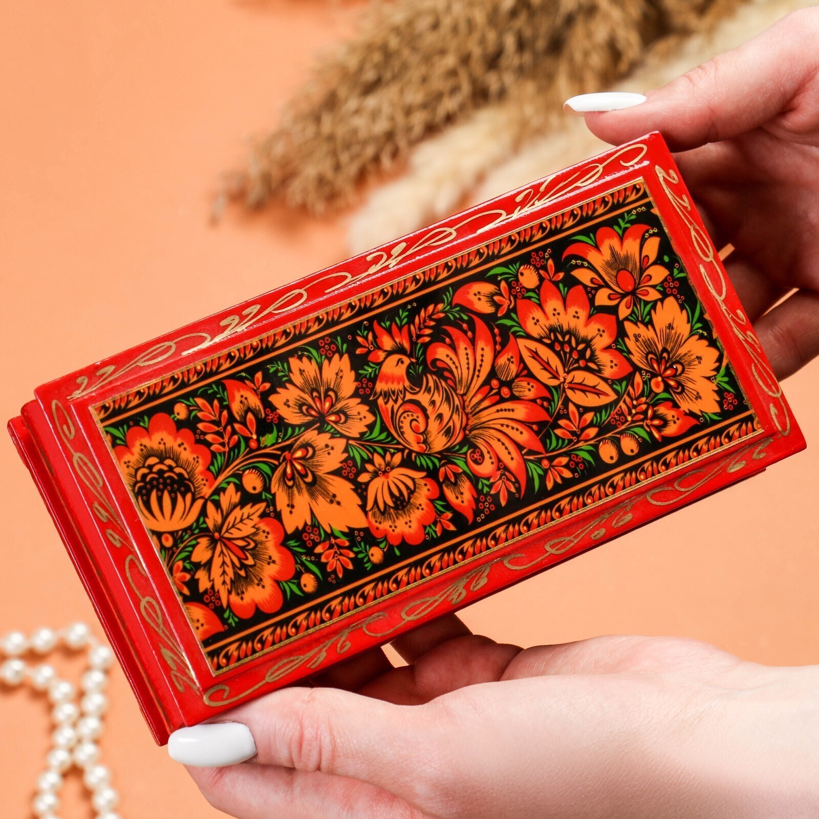 Шкатулка - купюрница «Узоры», 8,5×17 см, красная, лаковая миниатюра