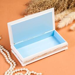 Шкатулка изготовлена из дерева, покрыта краской. Заранее напечатанное изображение приклеено и покрыто лаком. Дополнительно мастер наносит узор.