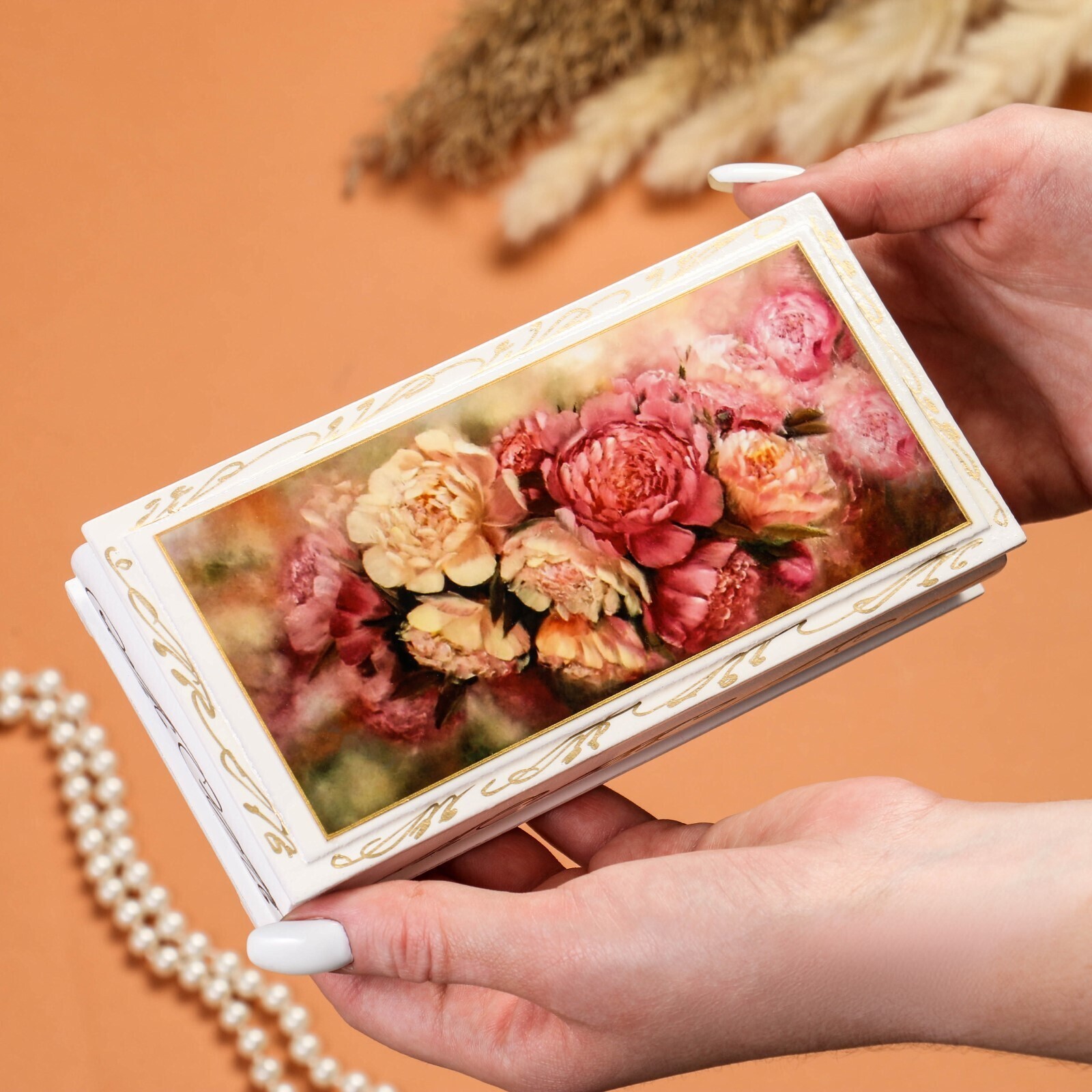 Шкатулка - купюрница «Пионы», белая, 8,5×17 см, лаковая миниатюра
