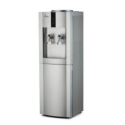 Напольный кулер для воды с нагревом (85-92 С) и электронным охлаждением (10-15 С). Со шкафчиком в нижней части корпуса. 2 крана (типа нажим чашкой) для подачи горячей и холодной воды.