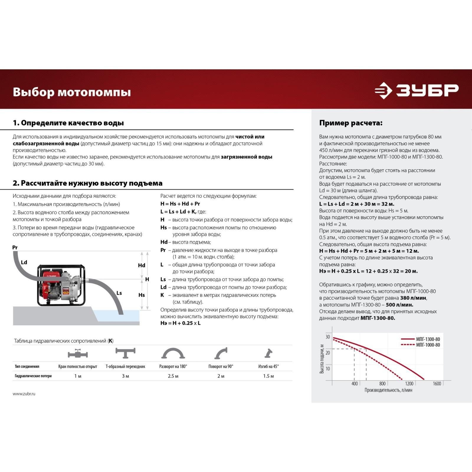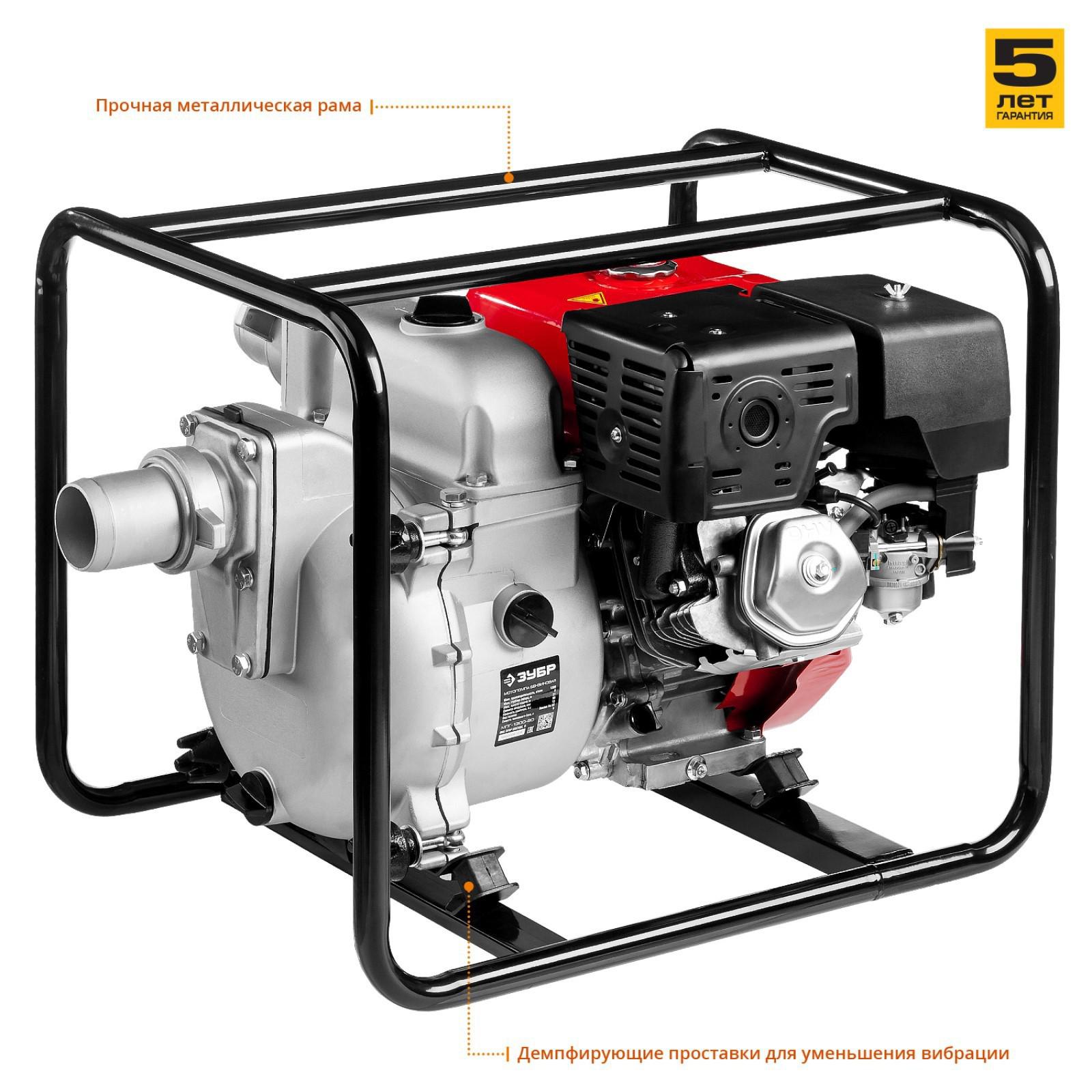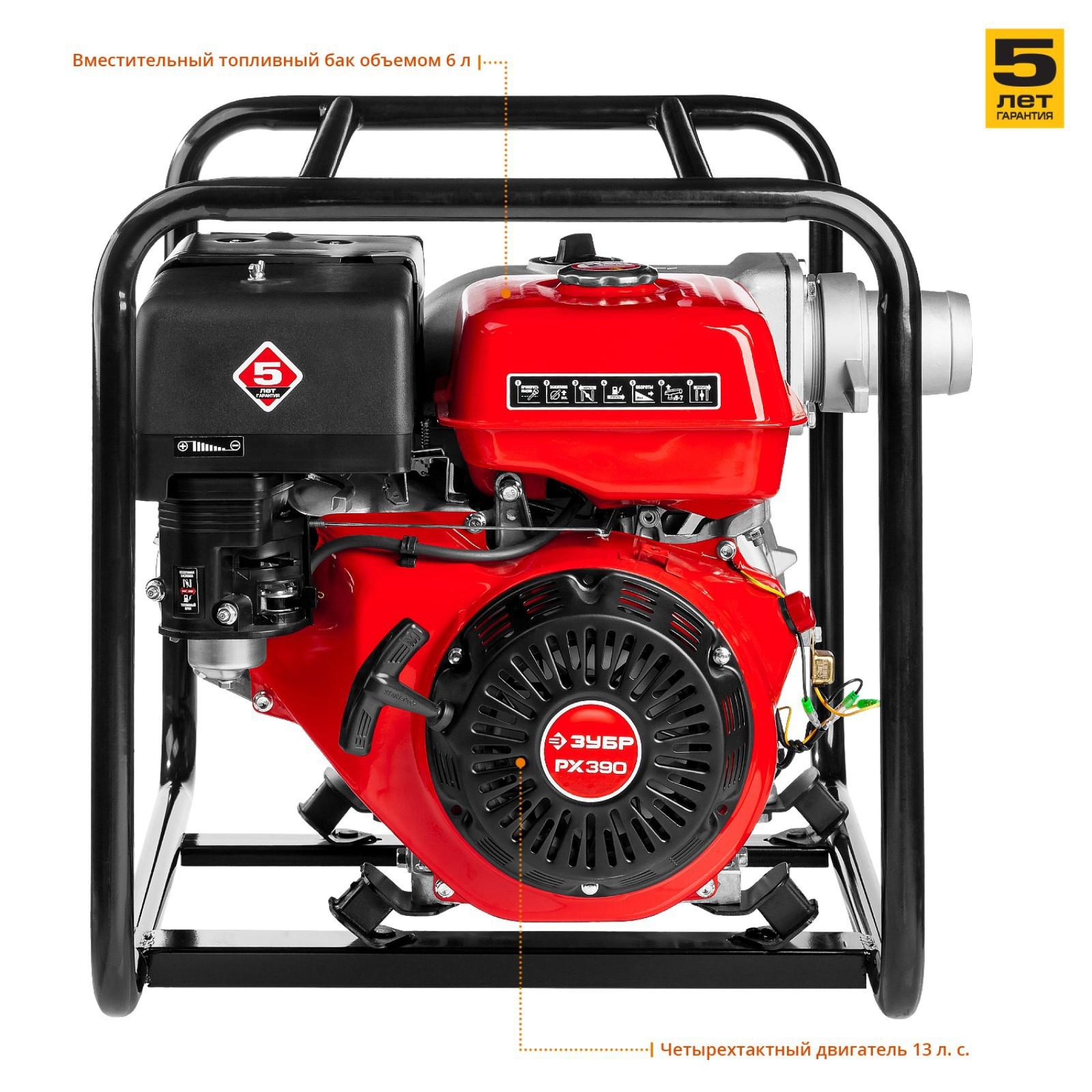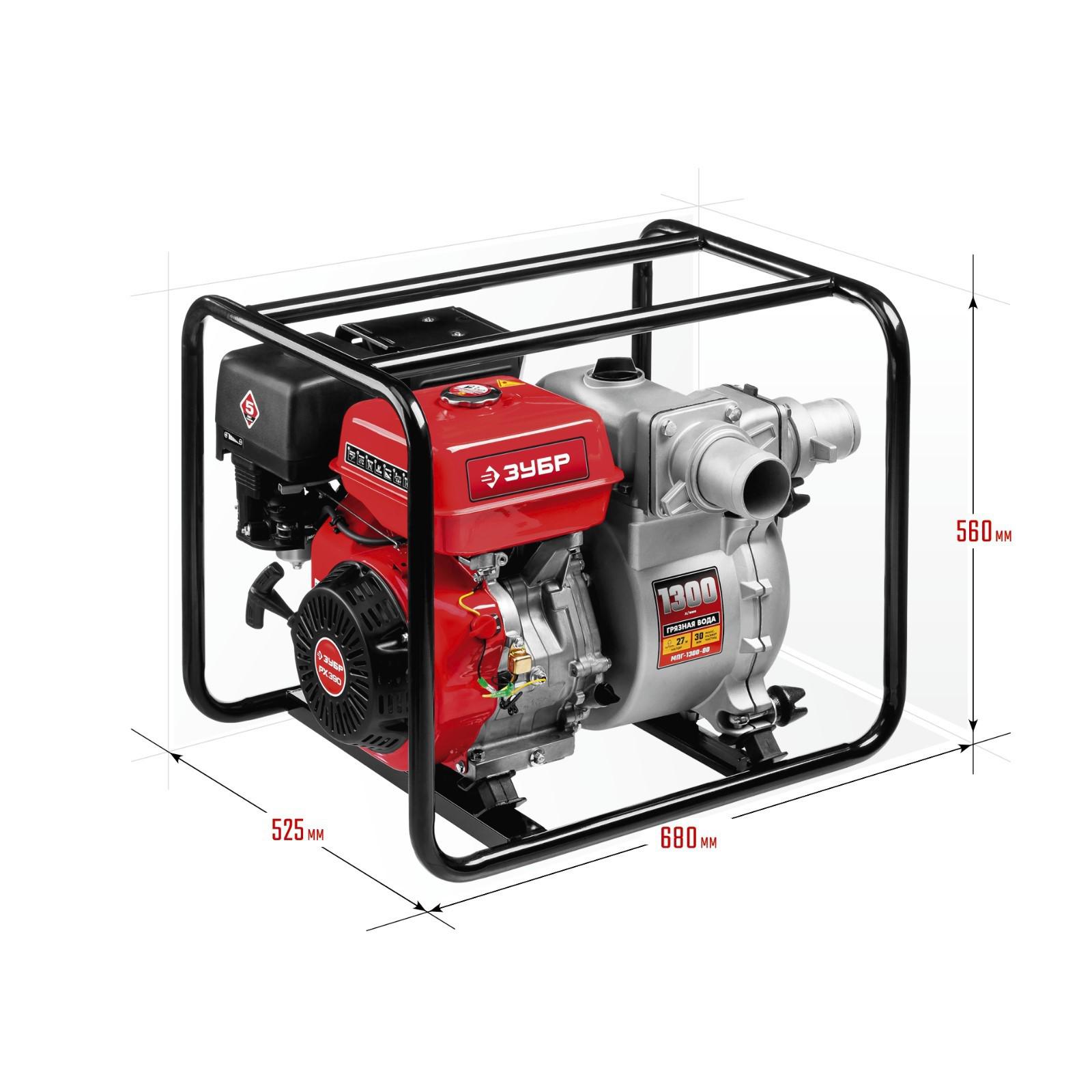 Мотопомпа для грязной воды ЗУБР МПГ-1300-80, 4Т, 9.6 кВт, 1300 л/мин, d=80 мм, подъем 27 м
