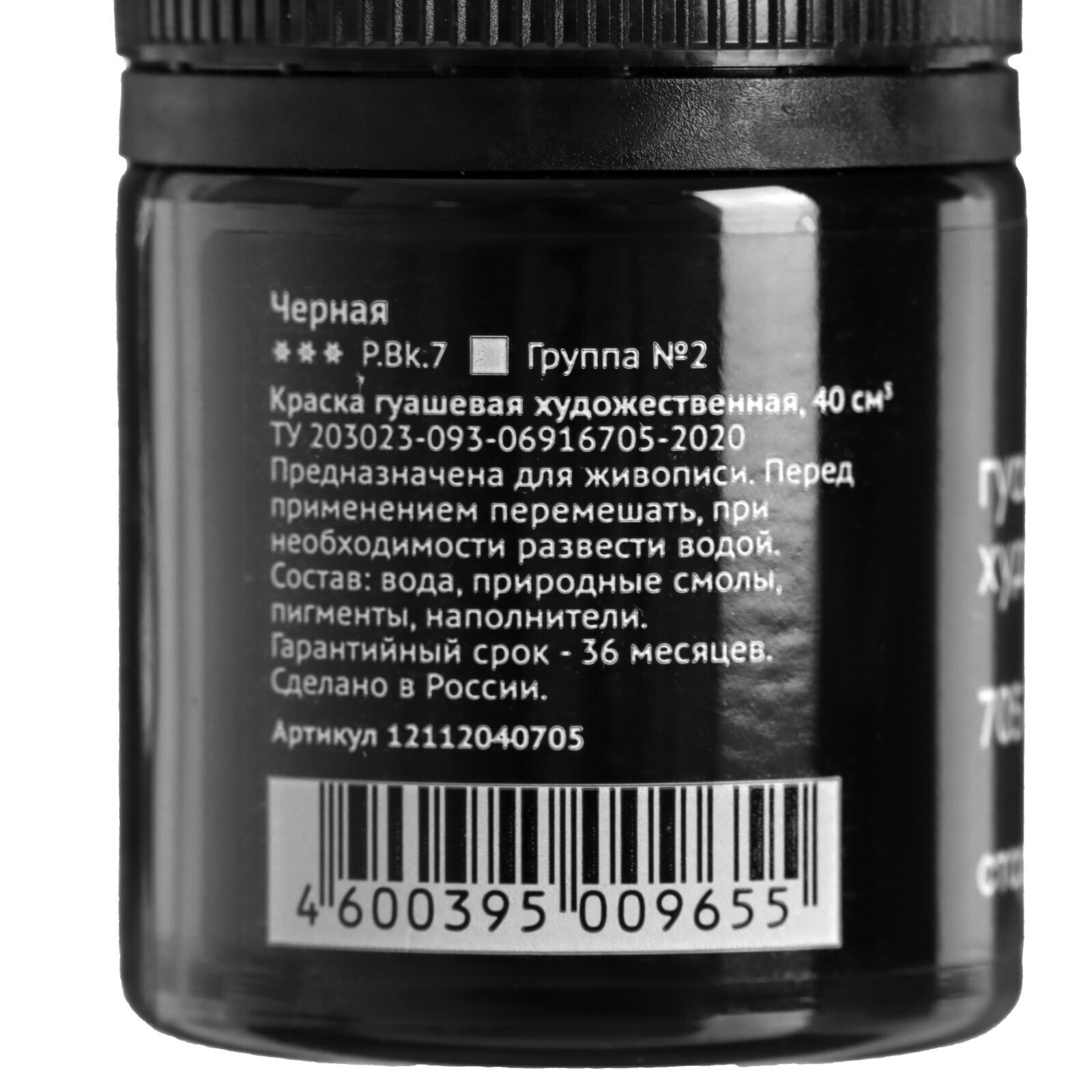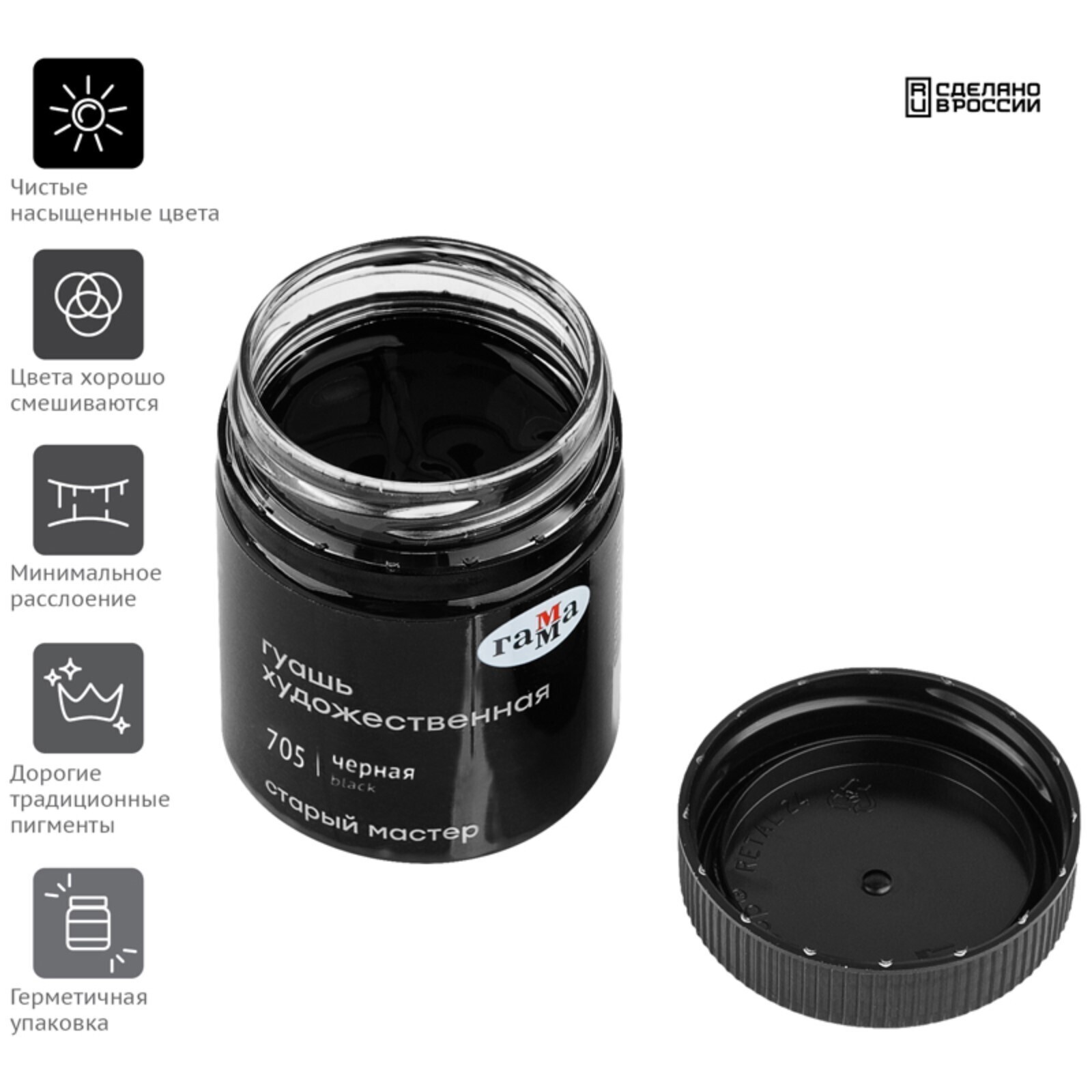 Гуашь художественная банка 40мл, "Гамма" "Старый мастер", чёрная