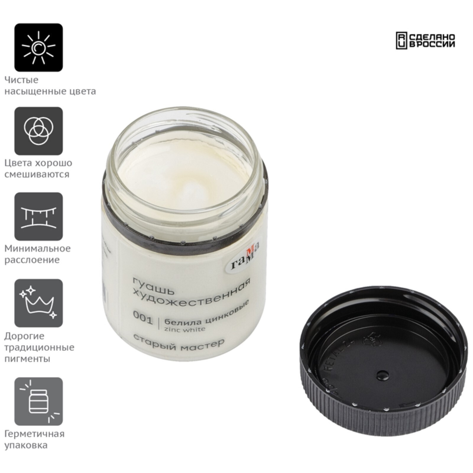 Гуашь художественная банка 40 мл, "Гамма. Старый мастер", белила титановые