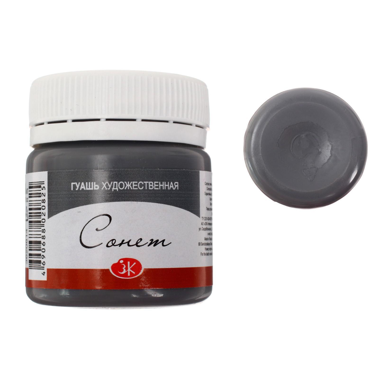 Гуашь художественная в банке 40 мл, ЗХК "Сонет", серая (3620814)