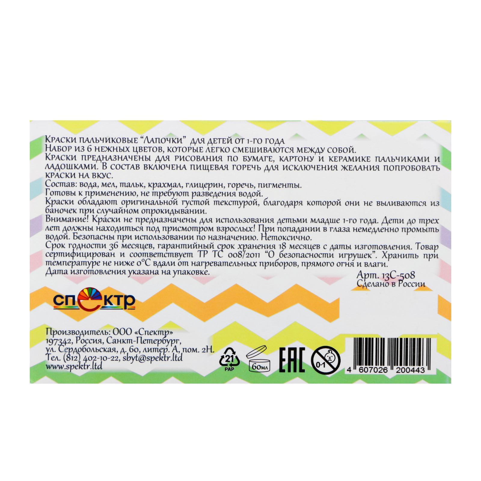 Краски пальчиковые Спектр, набор 6 цветов х 60 мл, 360 мл "Лапочки" (от 1 года )
