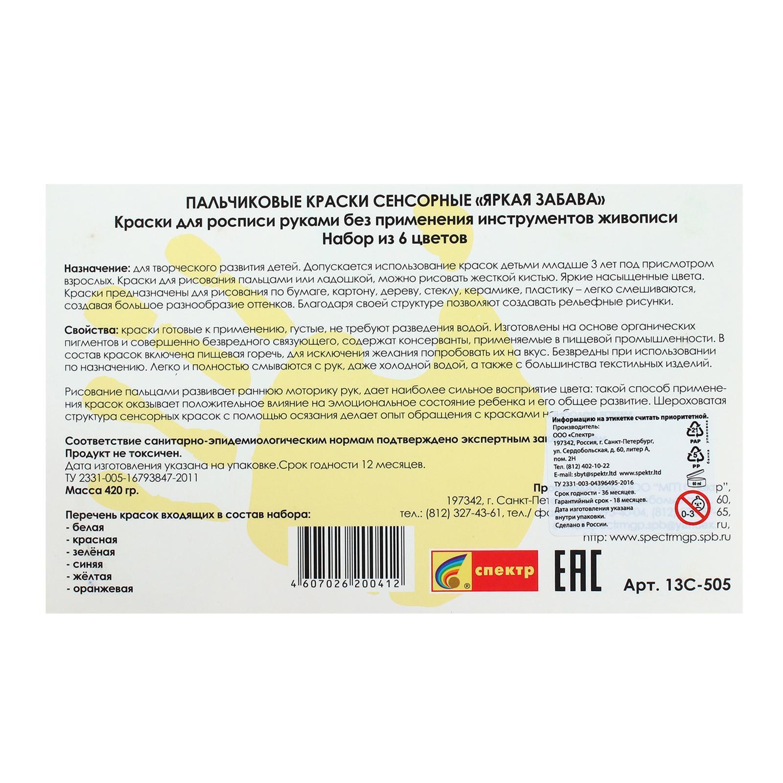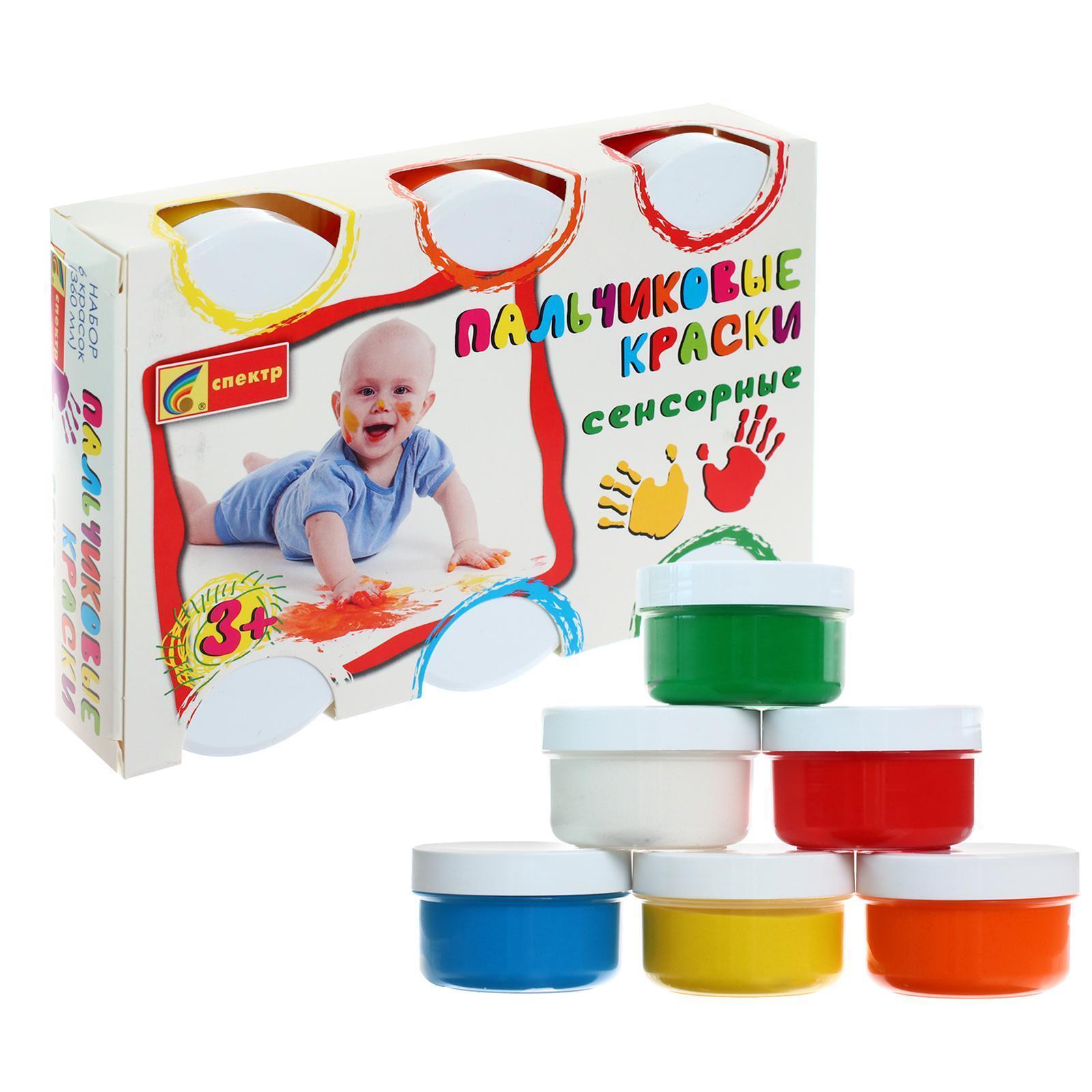 Краски пальчиковые, набор 6 цветов х 60 мл, «Спектр», 360 мл, сенсорные (от 3-х лет)