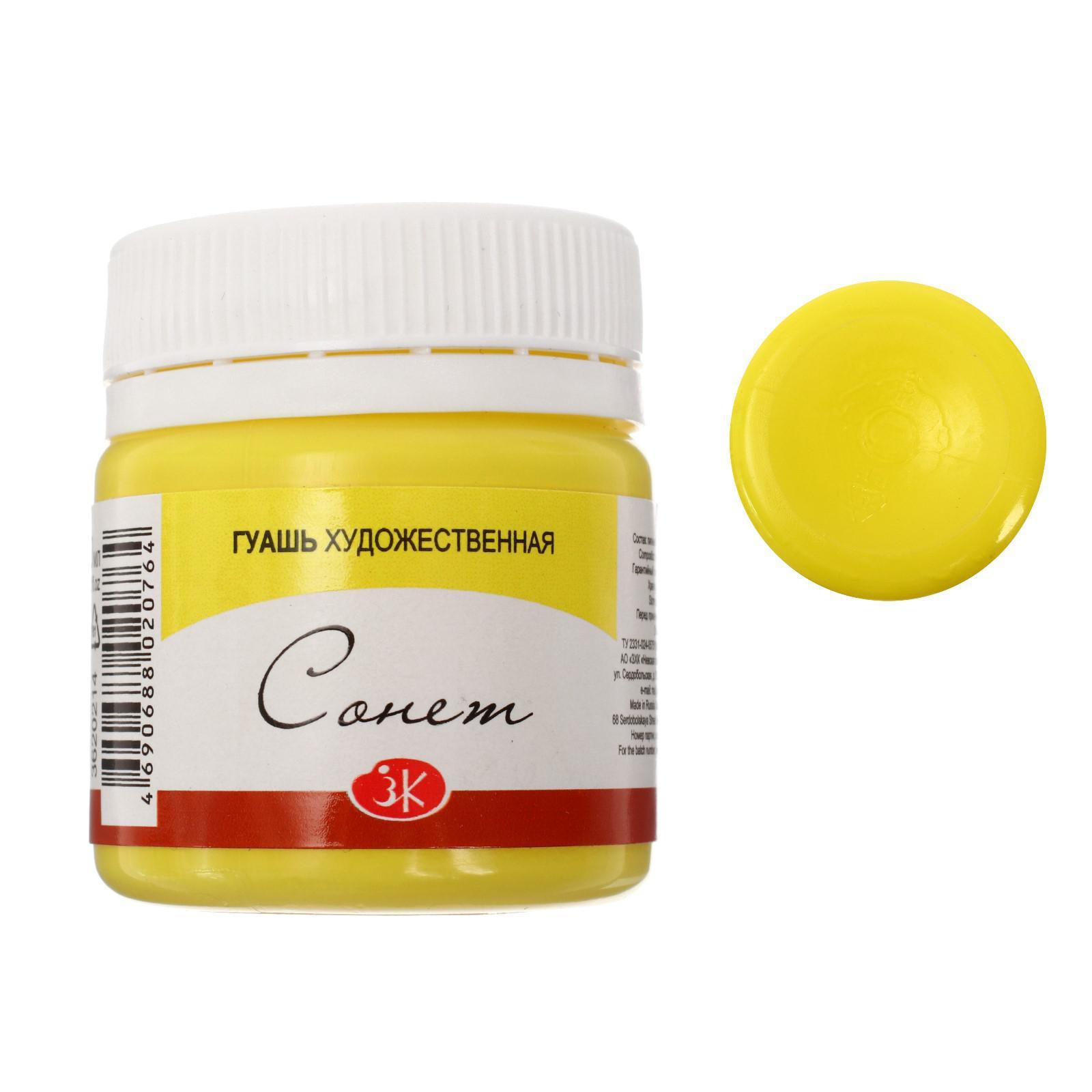 Гуашь художественная в банке 40 мл, ЗХК "Сонет", лимонная (3620214)