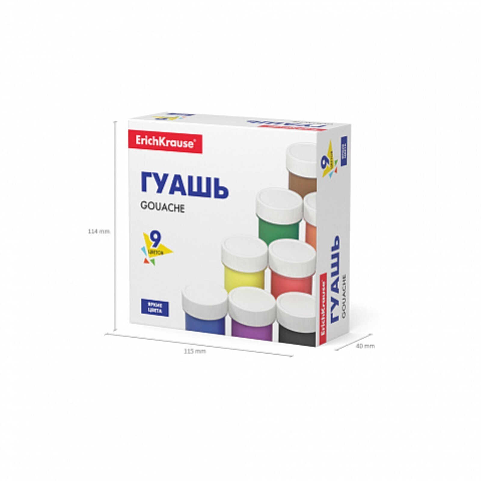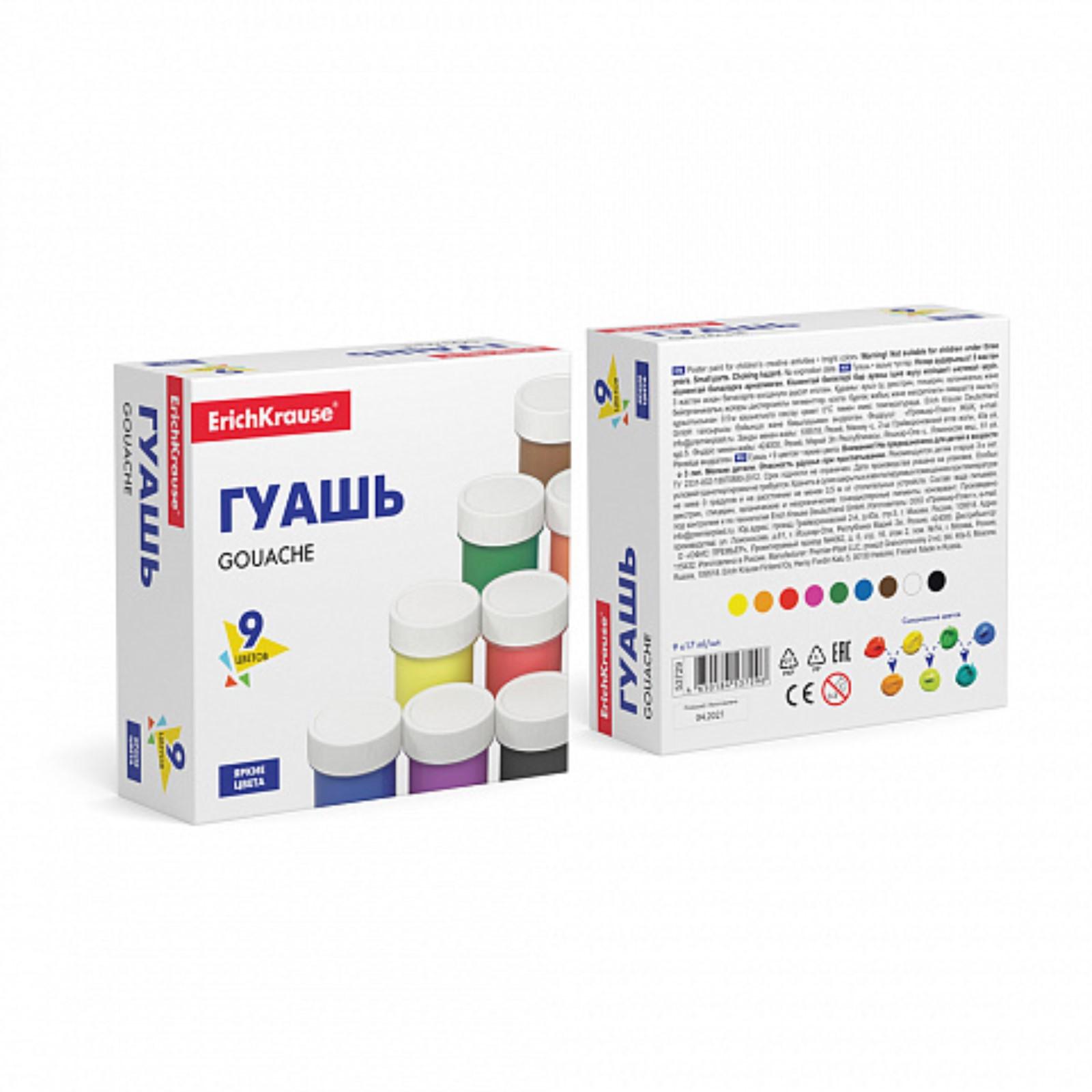 Гуашь 9 цветов х 17 мл, ErichKrause Basic, в картонной упаковке