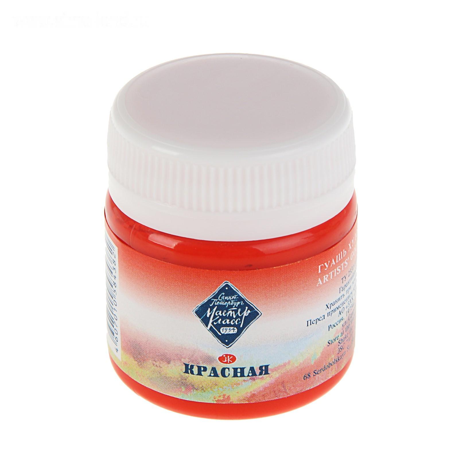 Гуашь художественная в банке 40 мл, ЗХК "Мастер класс", красная (1720331)