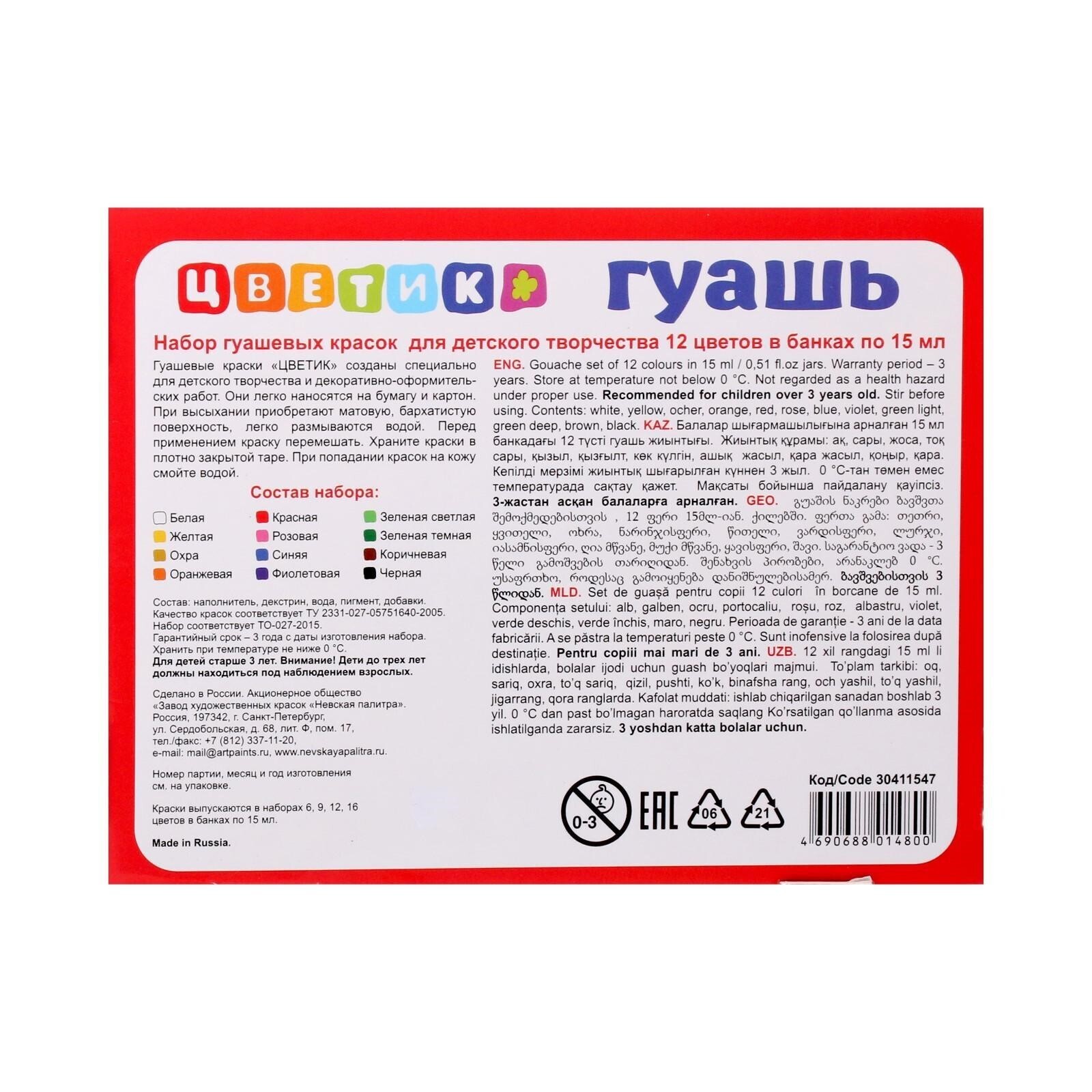 Гуашь 12 цветов, 15 мл, ЗХК "Цветик" (30411547)