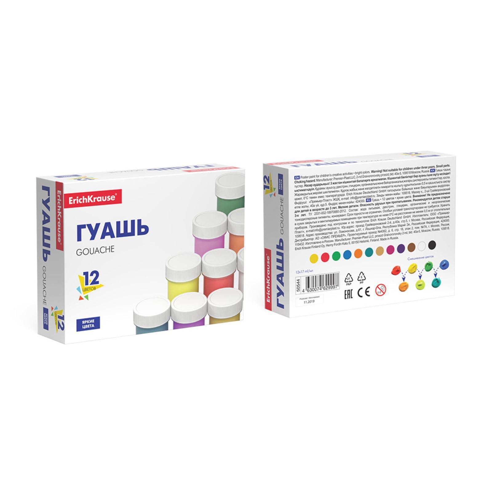 Гуашь 12 цветов х 17 мл, ErichKrause, в картонной упаковке