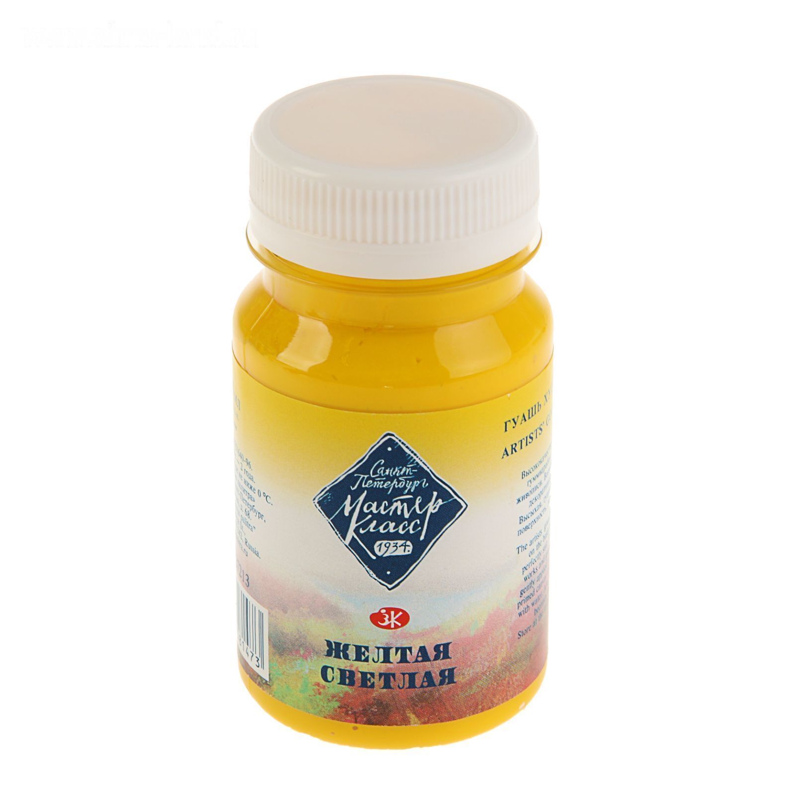Гуашь художественная в банке 100 мл, ЗХК "Мастер класс", жёлтая светлая (1727213)