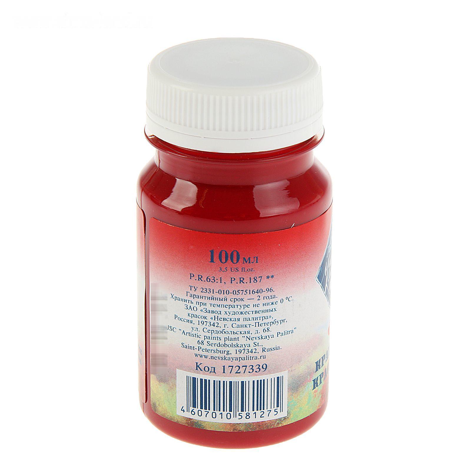 Гуашь художественная в банке 100 мл, ЗХК "Мастер класс", краплак красный (1727339)