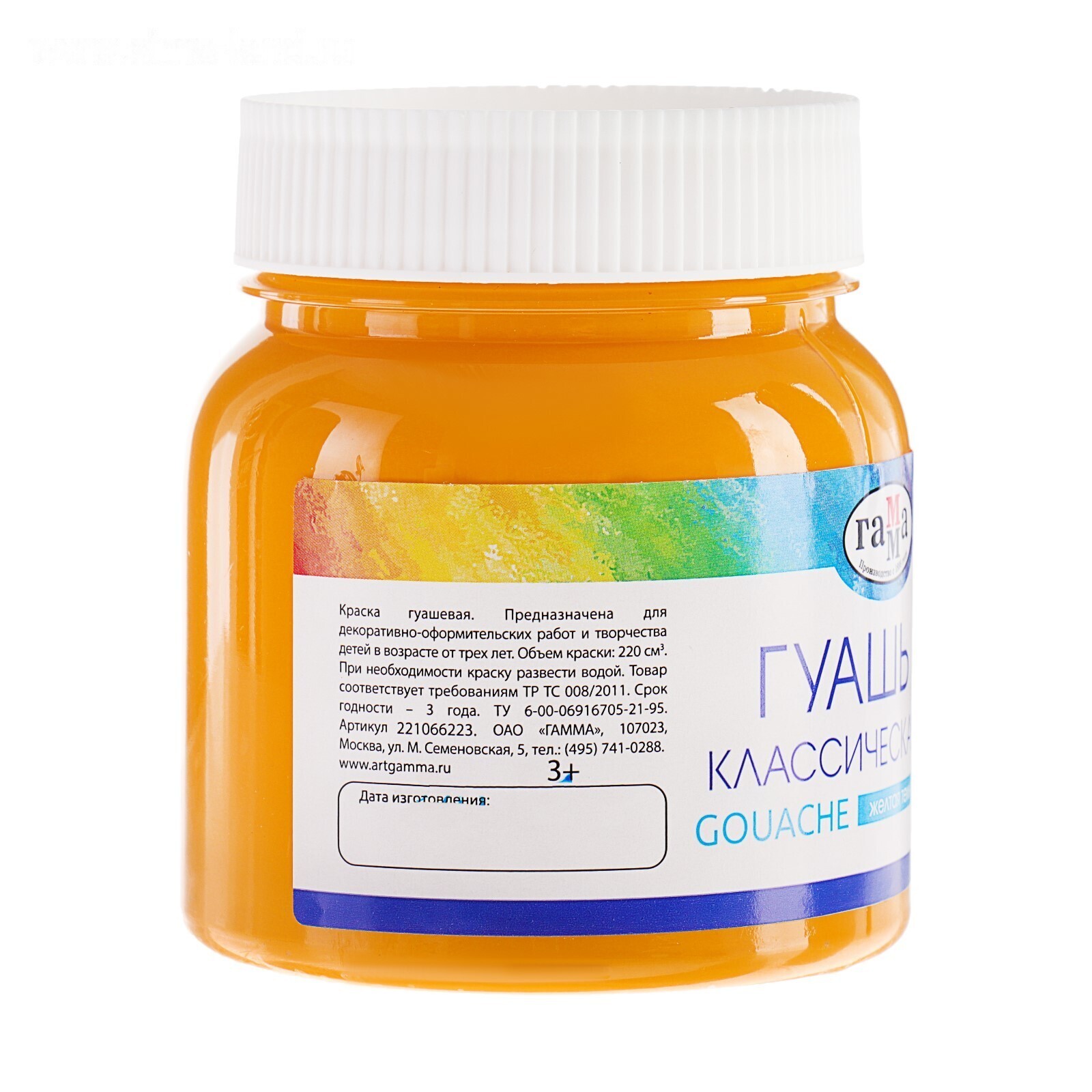 Гуашь 220 мл, «Гамма» «Классическая», жёлтая темная
