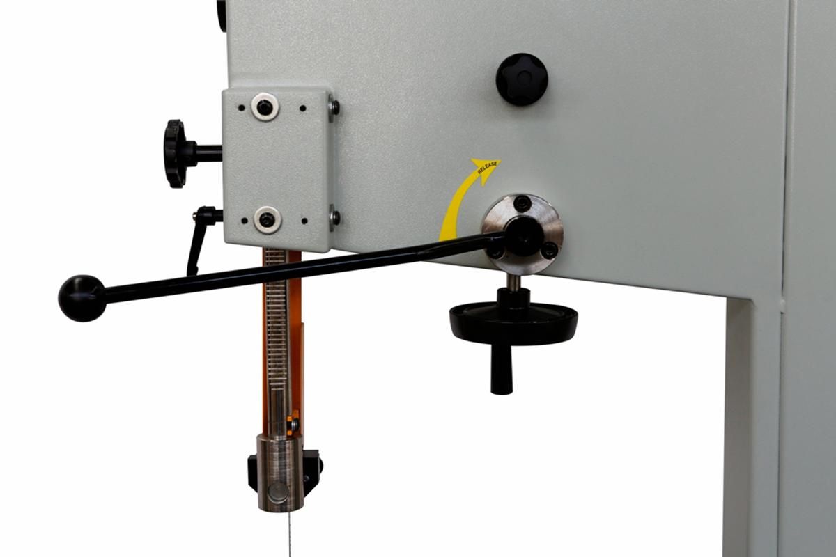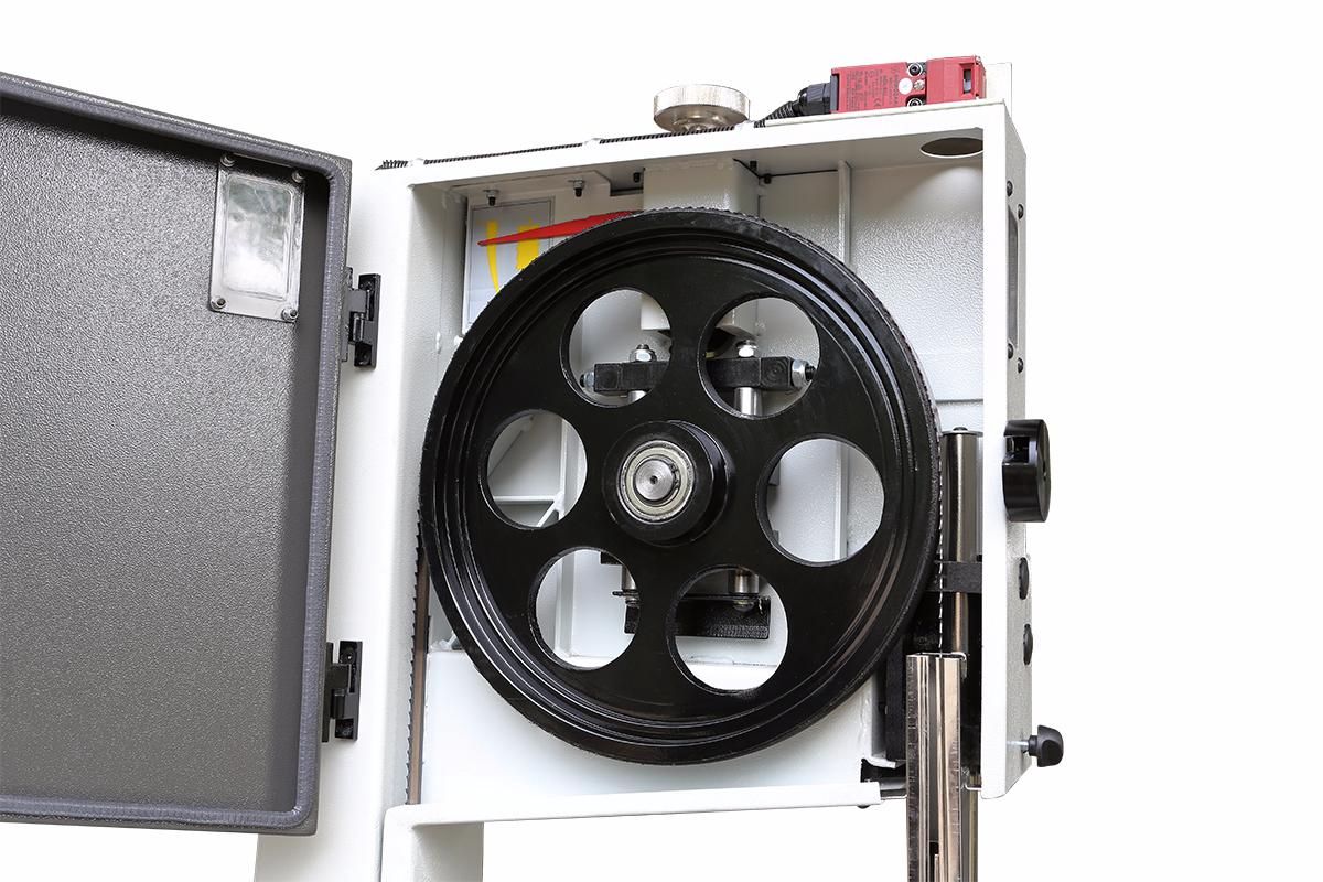 Ленточнопильный станок оснащён механизмом быстрого ослабления ленты, автоматическим тормозом пильного полотна, специальными приспособлениями для съема опилок с ленты, адаптером системы аспирации.