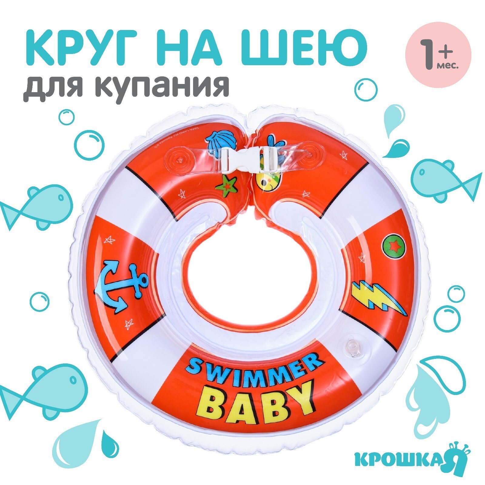 Круг детский на шею, для купания, Swimmer baby, с погремушками, двухкамерный