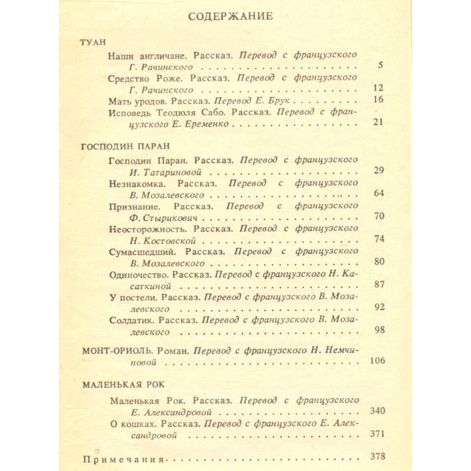 В четвертый том собрания сочинений классика французской литературы XIX века Ги де Мопассана вошли избранные рассказы из циклов «Туан», «Господин Паран», «Маленькая Рок» и роман «Монт-Ориоль». Комментарий, Перевод с французского.