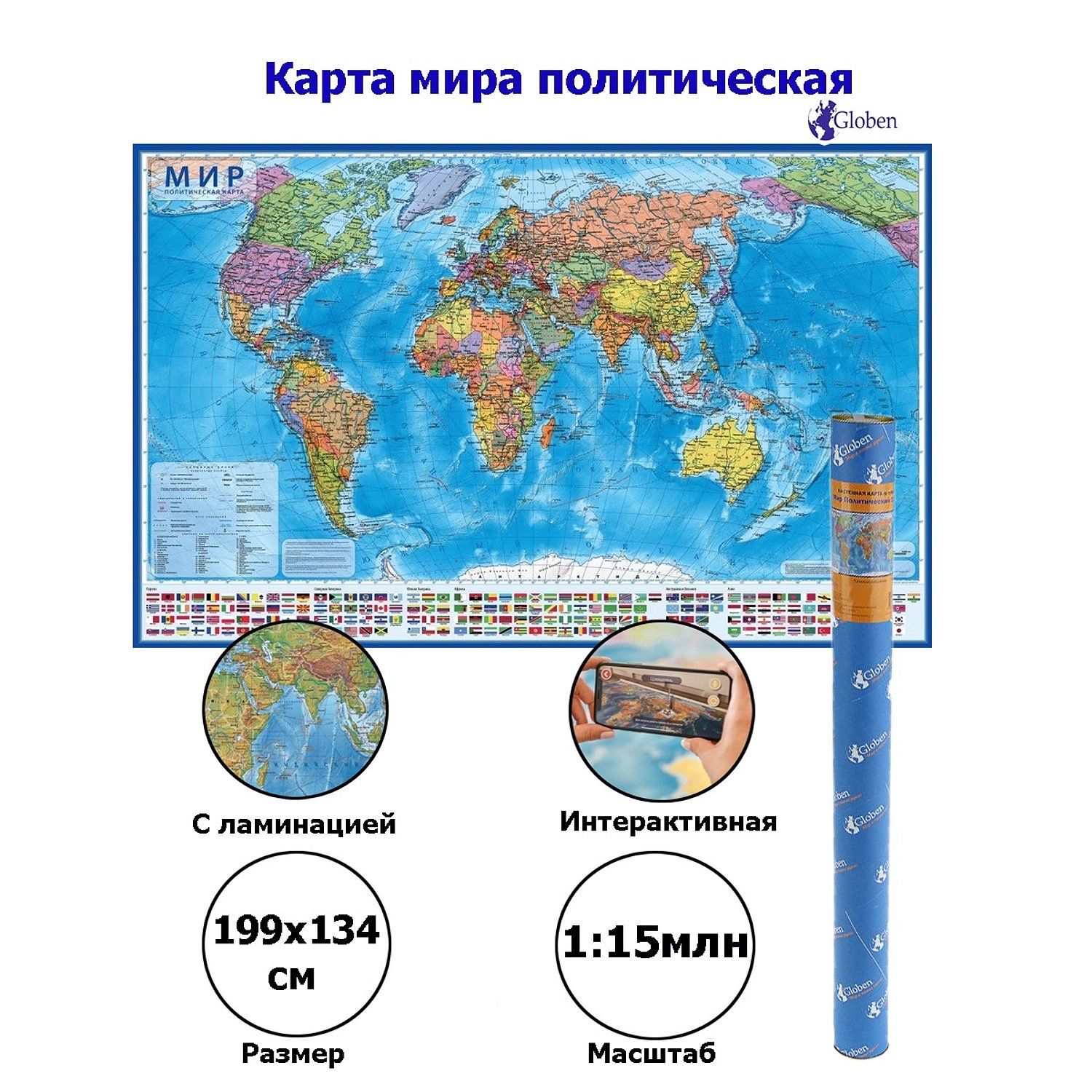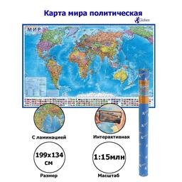 Интерактивная карта Globen Мир Политический с ламинацией 134х199 см КН093